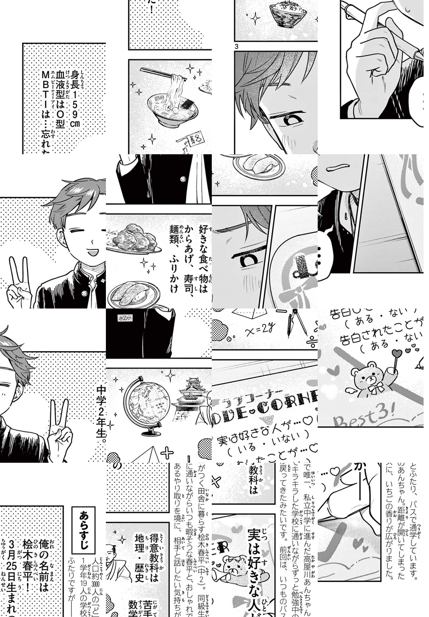 町全体で人口約3000人のど田舎に暮らす春平。 同級生で唯一、私立中学に進んだ 高屋川あんちゃんと同じバスで通学しています。 小学校以来会話がなくなっていた二人ですが、 ある日久々に話すきっかけが生まれ……? ふたり バスで始まる、淡い青色のラブ未満コメディー。