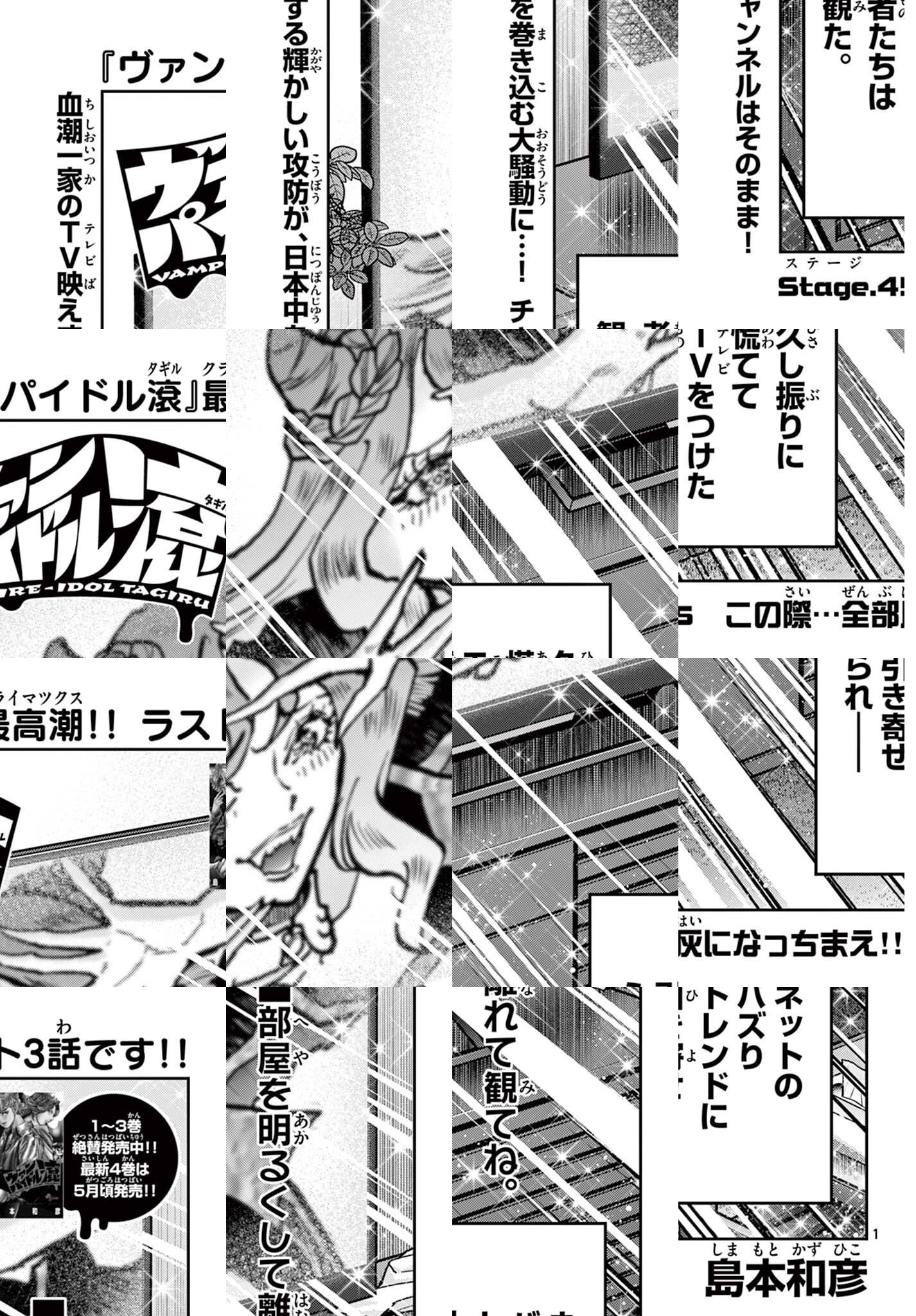 芸能界を蝕む吸血鬼(ヴァンパイア)の闇。 その暗がりを裂くは「本物」の光ーー 東京・池袋の地下に広がるアニメイトシアター。 ここでは主人公・血潮滾の所属するアイドルグループ『バンフレイム』初のワンマンライブが行われていた。 普段通りに軽快なトークを飛ばす滾だったが、ライブ中盤にある異変が――⁉ 熱血漫画家・島本和彦の圧倒的な愛と熱で贈る最新作、いざ開演。