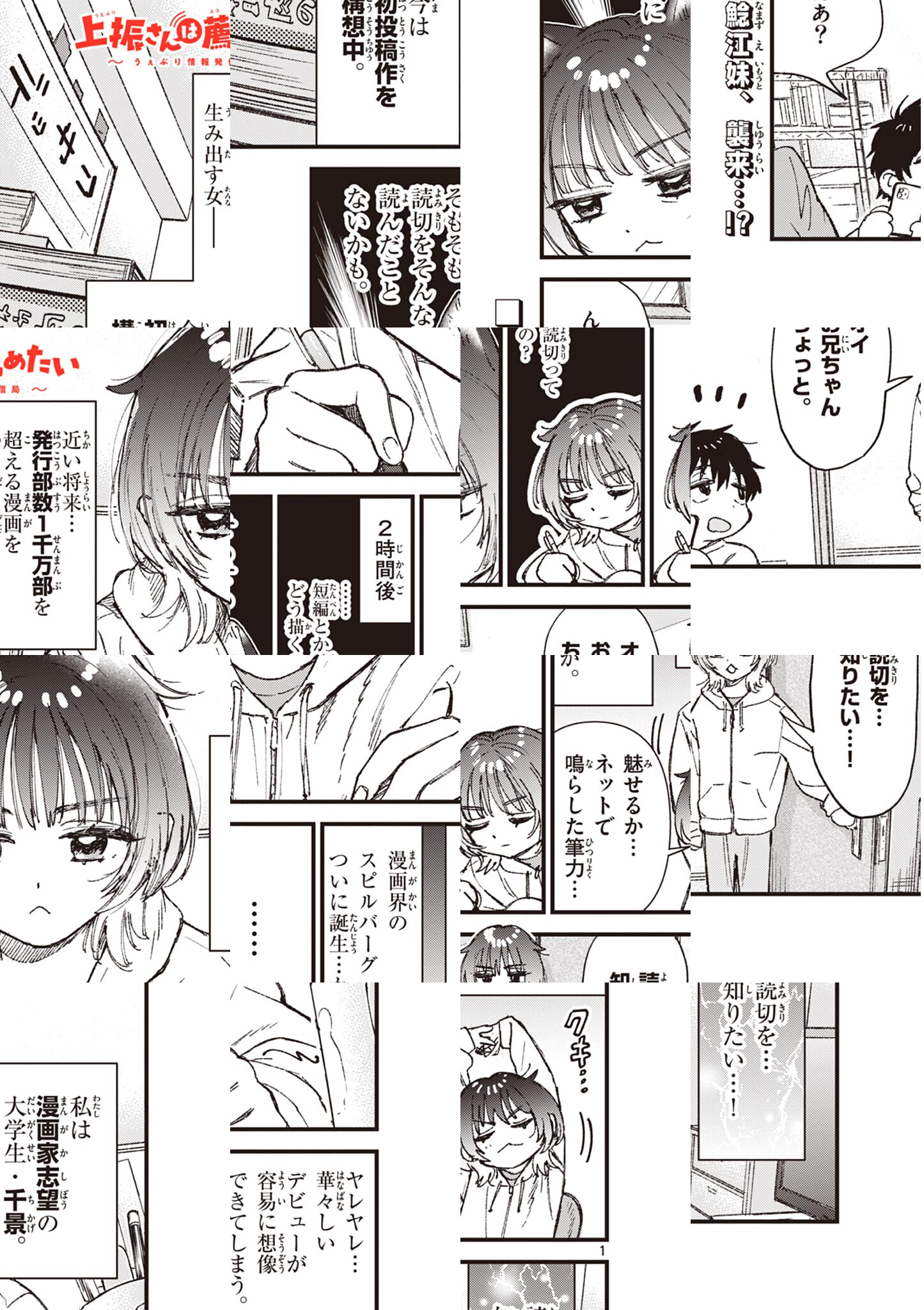ここはサンデーうぇぶり情報局。 やる気だけは100点の新人局員・はじめくん。 クールで美人な頼れる先輩・上振さん。 今日も局員二人が みなさまにピッタリな名作漫画をオススメします!! のはずなんだけど、上振さんはなんだか変わった人でして…… マンガ好きの、マンガ好きによる、マンガ好きのためのマンガ紹介マンガ!!
