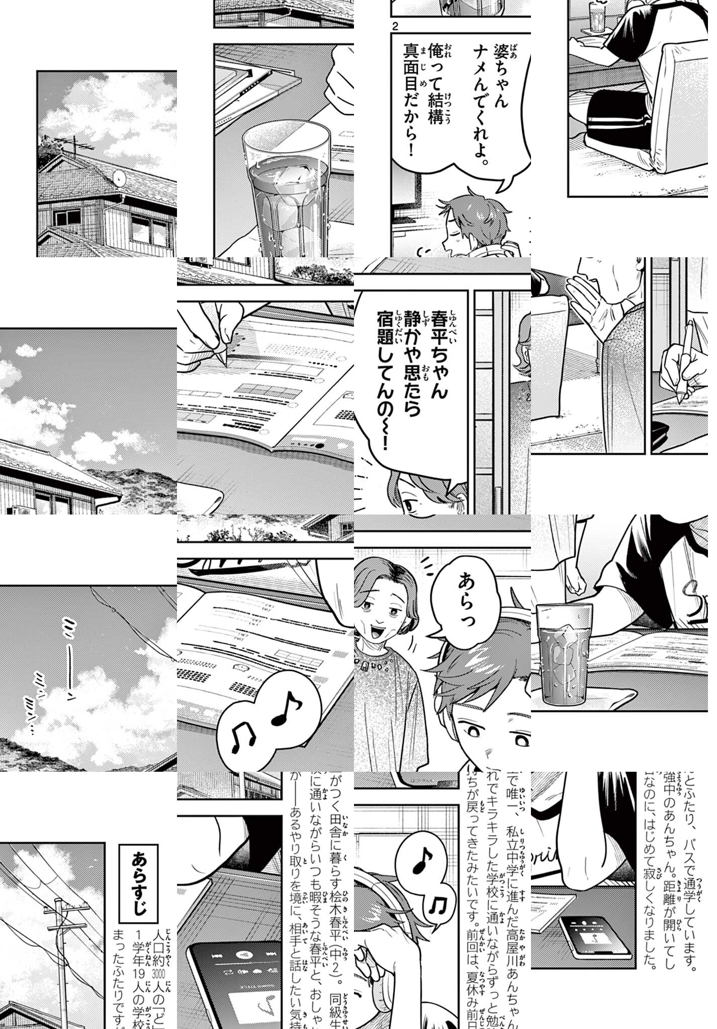 町全体で人口約3000人のど田舎に暮らす春平。 同級生で唯一、私立中学に進んだ 高屋川あんちゃんと同じバスで通学しています。 小学校以来会話がなくなっていた二人ですが、 ある日久々に話すきっかけが生まれ……? ふたり バスで始まる、淡い青色のラブ未満コメディー。