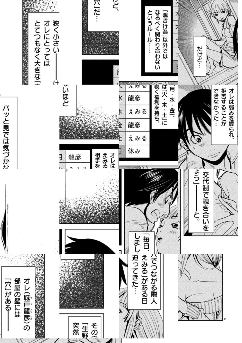 【毎週月曜日更新】 夜サンデーにて大好評連載中! 一人暮らしのアパートで見つけた壁の穴。覗いてみたら、隣の部屋に美女がいた── 「穴があいてます」と告げに行ったら、彼女が言った──私と"覗き合い"しませんか? 禁断と背徳のソリッド・シチュエーション恋物語。