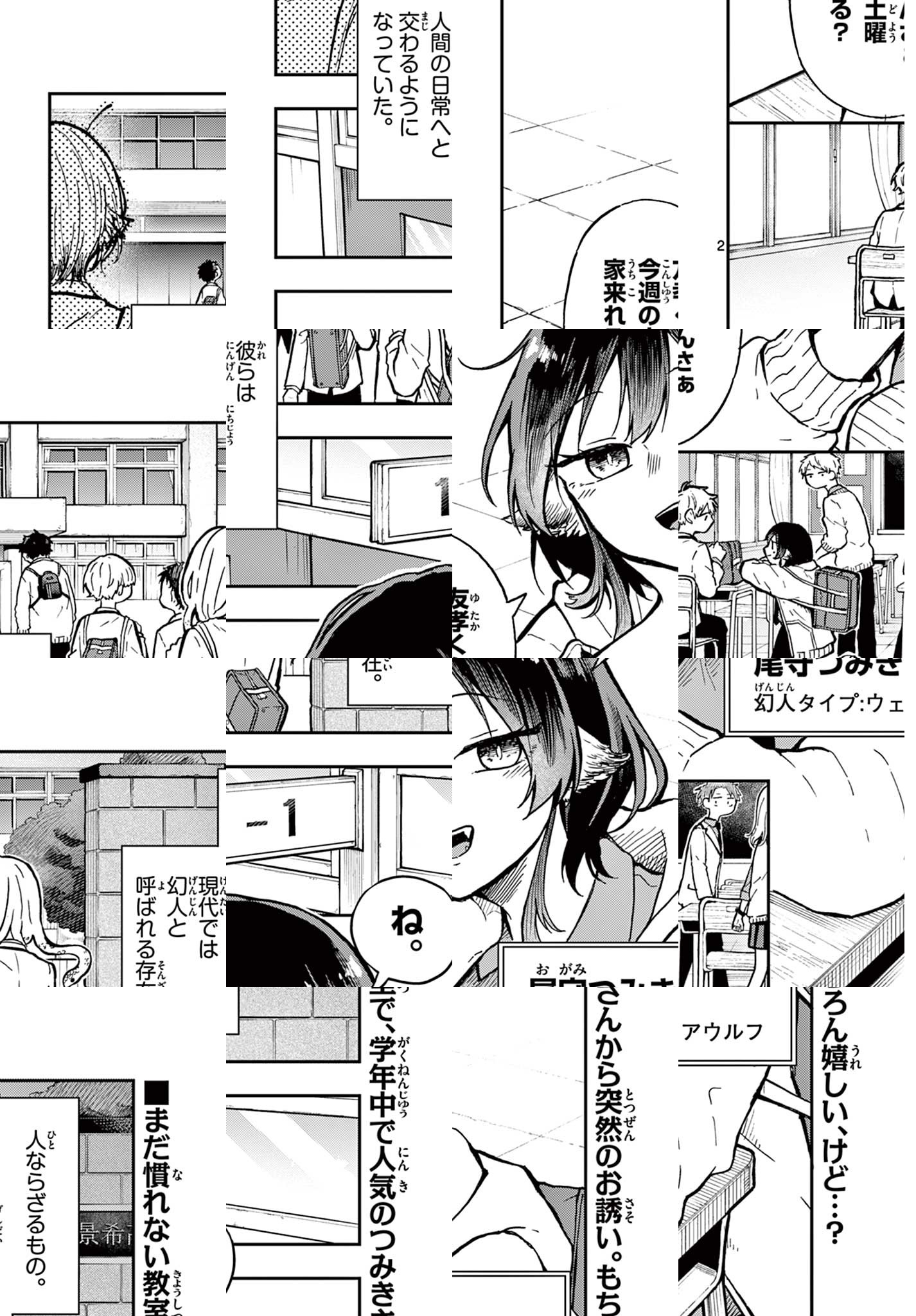 多様性の時代とされる現代。 「人ならざる存在」なんて昔の話。 「幻人」たちは人間と関わり合って生活しています。 悩める人間の少年、真層友孝(しんそうゆたか)くん。 周囲に合わせてばかりで、自分の気持ちが分からなくなりました。 「幻人」たちが多く通う景希高校で出会ったのは、人狼(ウェアウルフ)の尾守つみきさん。 可愛くて、パワフルで、ちょっと抜けてて、優しくて… 彼女と過ごすと、友孝くんの心はなんだかいつもより騒がしい。 人狼(ウェアウルフ)のつみきさんと紡ぐ 「普通」じゃない日常。 ニューノーマルな青春グラフ、始まります。