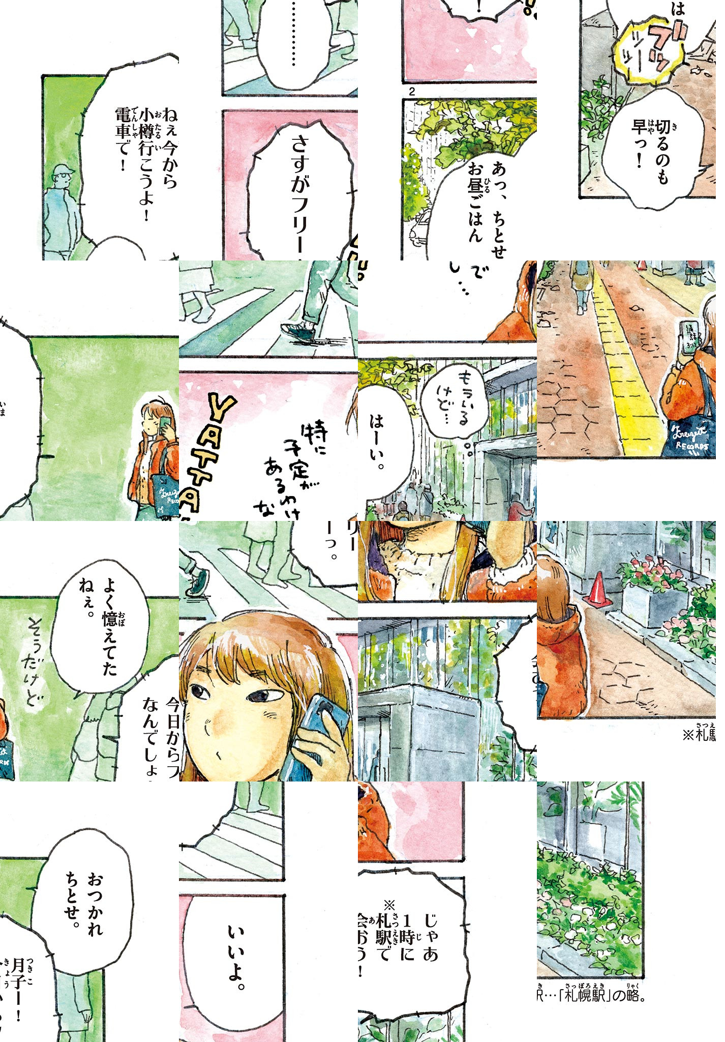 札幌で暮らす月子は、仕事をやめたばかり。これからどうしようか、人生を検討中。 月子の友達のちとせは地元誌のライターとして活躍している、アクティブな性格。ちとせは時間を持て余し始めた月子を様々な場所へ連れ出す。列車で小樽にふらりと遊びに行ったり、面白いシェアハウスを紹介したり…。 ちょっと自由で先進的で、開放的な人たちが、自然や異国情緒溢れる北海道の各所を背景に、ゆるゆると生き方と暮らしを考える。 新感覚ライフスタイル漫画!