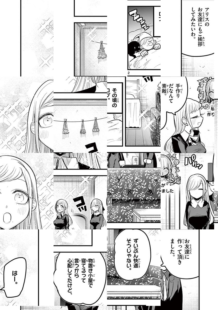 町から外れた森の中、その奥の奥にひっそり佇む大きなお屋敷。そこには「死神」が住んでいる__ある日、魔女に「触れたもの全てを死なせてしまう」呪いをかけられ、周囲に拒絶されるようになった貴族の「坊ちゃん」。そんな坊ちゃんが今一番困っていることは…彼に仕えるメイド・「アリス」の逆セクハラ!彼女のことが気になる坊ちゃん。逆セクハラは嬉しい…でも触れられないのは辛い!アリスもどうやら坊ちゃんが気になっているようだけど、坊ちゃんは彼女の手さえも繋げない。二人の純愛は実を結ぶのか!? Twitterで大反響を呼んだ、二人の小さな恋物語、待望の週刊連載化!! ◆作者コメント ちょいギャグちょいエロちょい純愛で頑張っていこうと思います。 ◆作者コメント(最終話まで読んでいただいた方へ) ご愛読有難うございました。 死神坊ちゃんと黒メイドに関連するお話を思いついたらまたなにか描きますので、見に来て頂けると嬉しいです。