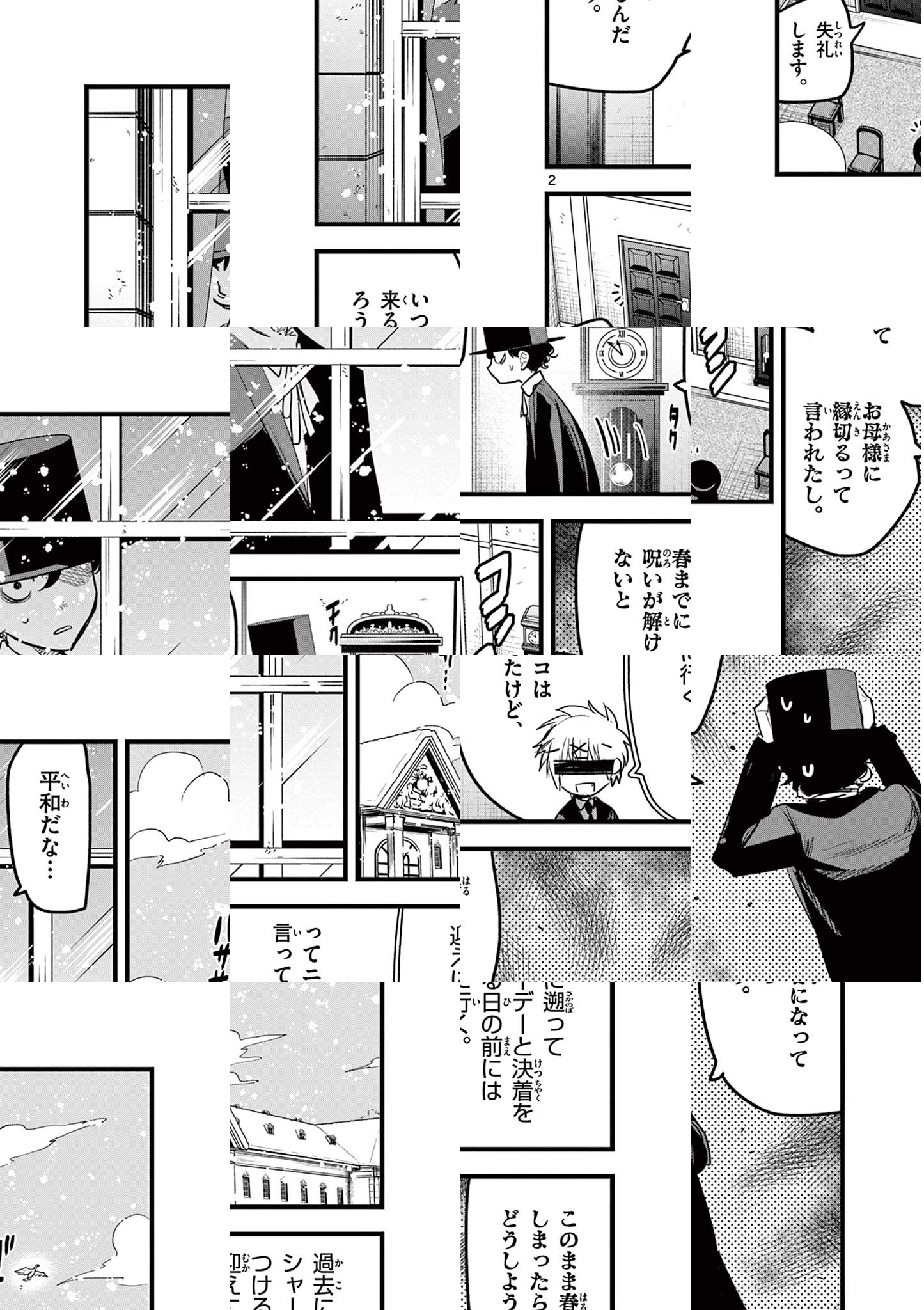 町から外れた森の中、その奥の奥にひっそり佇む大きなお屋敷。そこには「死神」が住んでいる__ある日、魔女に「触れたもの全てを死なせてしまう」呪いをかけられ、周囲に拒絶されるようになった貴族の「坊ちゃん」。そんな坊ちゃんが今一番困っていることは…彼に仕えるメイド・「アリス」の逆セクハラ!彼女のことが気になる坊ちゃん。逆セクハラは嬉しい…でも触れられないのは辛い!アリスもどうやら坊ちゃんが気になっているようだけど、坊ちゃんは彼女の手さえも繋げない。二人の純愛は実を結ぶのか!? Twitterで大反響を呼んだ、二人の小さな恋物語、待望の週刊連載化!! ◆作者コメント ちょいギャグちょいエロちょい純愛で頑張っていこうと思います。 ◆作者コメント(最終話まで読んでいただいた方へ) ご愛読有難うございました。 死神坊ちゃんと黒メイドに関連するお話を思いついたらまたなにか描きますので、見に来て頂けると嬉しいです。