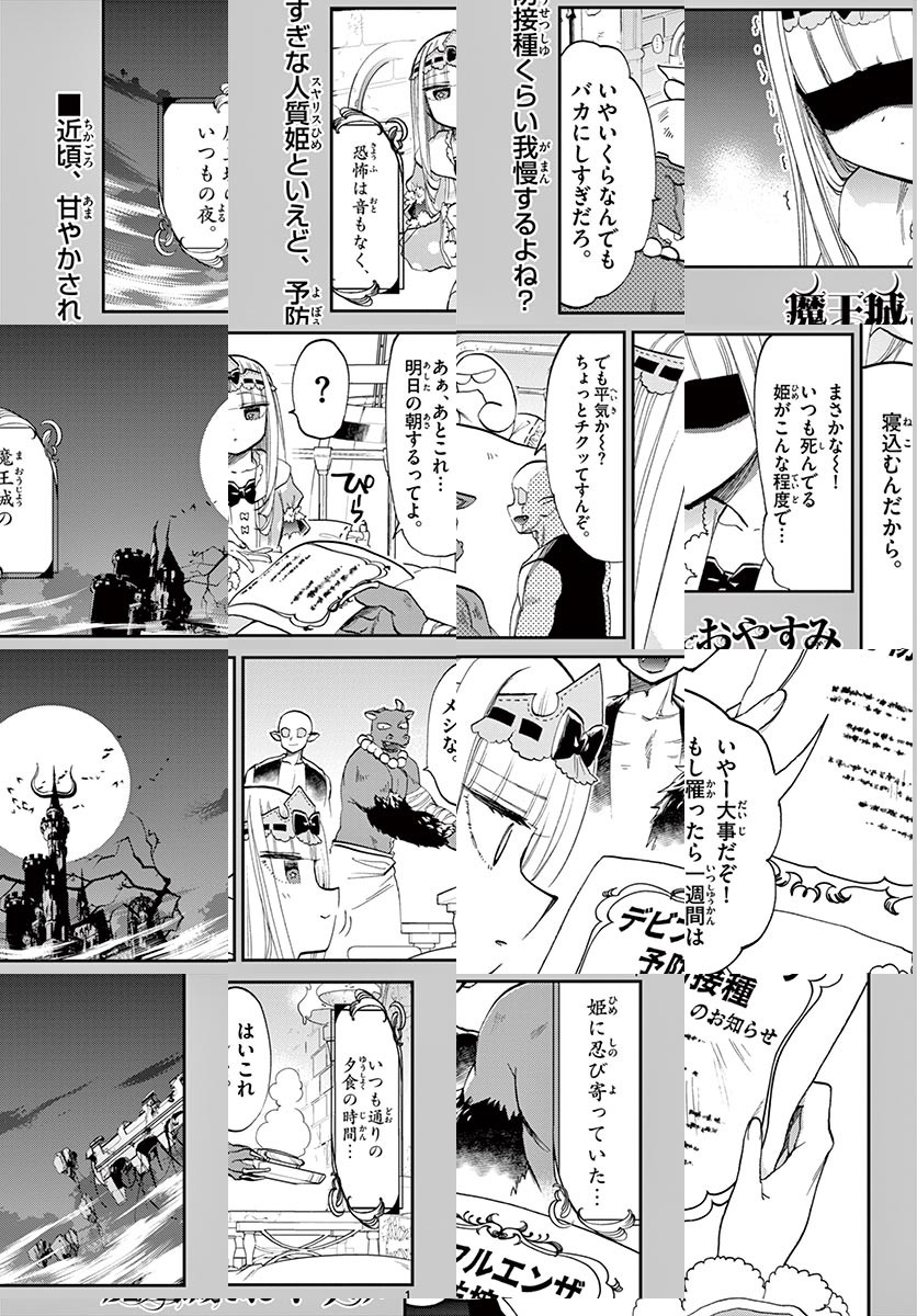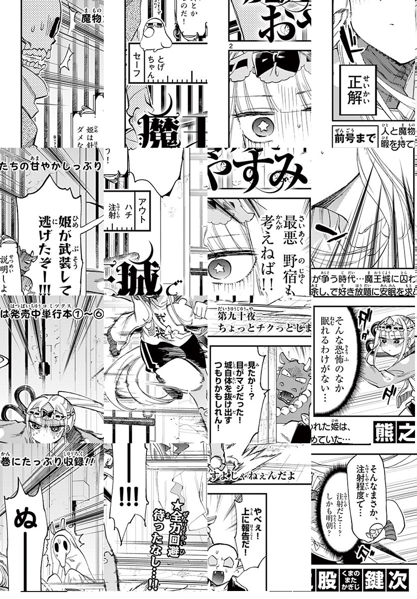 かつて、人と魔が存在していた時代── 魔王は人間の姫をさらい、自らの城に幽閉した。 人々は怒り、勇者は姫を救うために旅立つ!! そんな中、檻の中で姫は想う… 「寝る以外、する事ない」安眠する方法を探すため、囚われの姫が魔物を狩ったり、宝物庫に忍び込んだり・・・! 新感覚、睡眠ファンタジーコメディー!! ◆作者コメント こんにちは。熊之股と申します。 この度サンデーうぇぶりに私の漫画も掲載されるとの事で、姫の行いを見てもらえる機会が増えるかもと喜んでいます。 宜しくお願いします。