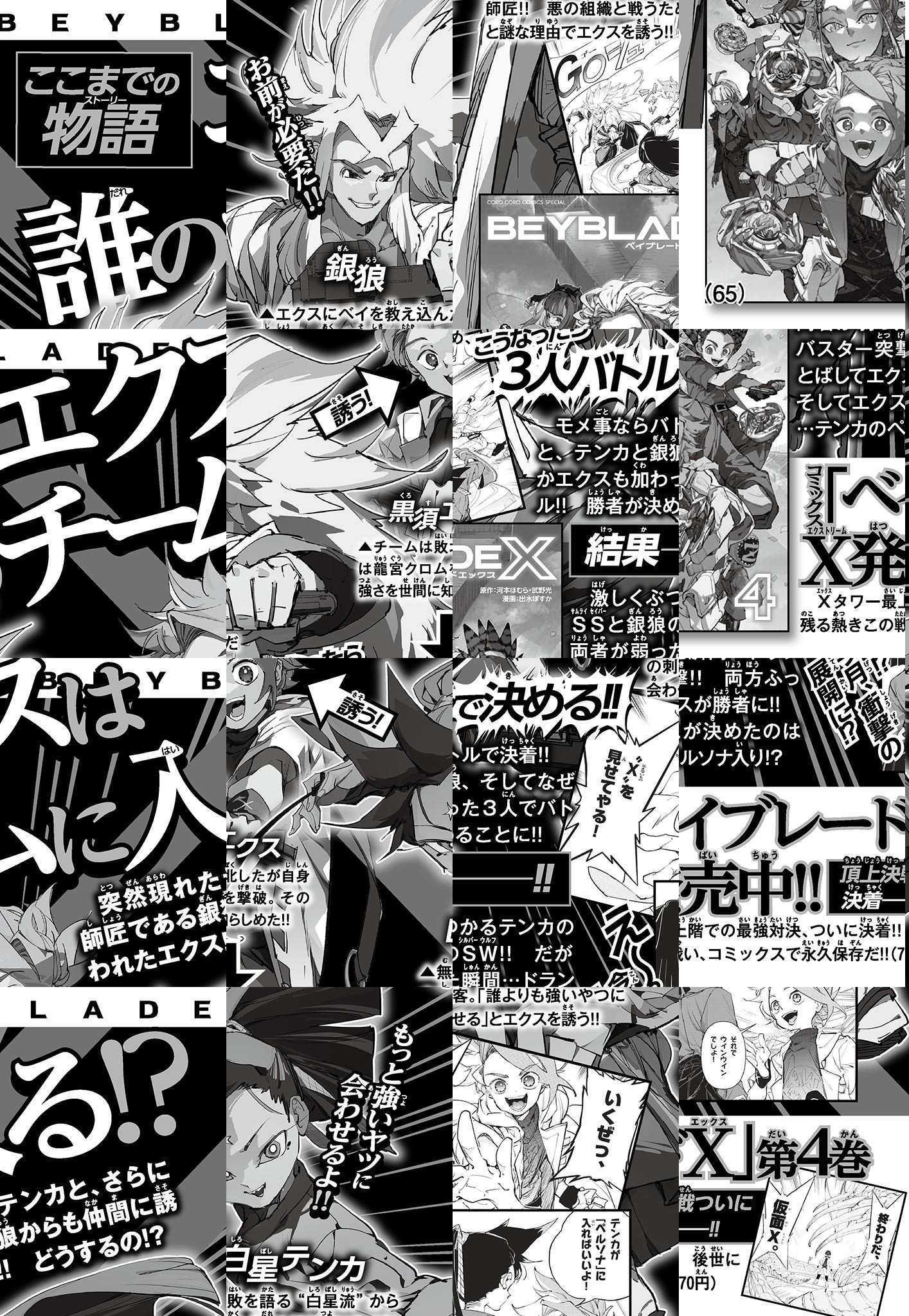 手にしたのは「希望」か、「絶望」か。 少年の運命は激変する。 求めたのは“強さ”“勝利”“名誉”そして――― “X(まだ見ぬもの)”。 これは、ベイブレードにすべてを懸ける物語。 いま一人の少年が、“X”を求め、 ベイブレードの頂に立つ! 極限加速(エクストリーム)したベイブレードが 新時代を駆け抜ける―――― 全世界で5億個以上販売された史上最強ホビー、 ベイブレードの最新シリーズ「BEYBLADE X」を題材とした ストーリー作品。月刊コロコロコミックにて連載中。