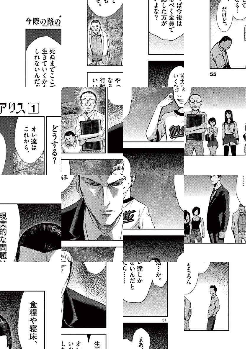 女子高生・小島亜里朱がある朝目覚めたのは、人が消えたまま何十年も経ったかのような京都の街。彼女は自分と同じように記憶をなくし、トランプの絵札を身につけていた10人の様々な男女と出会う。しかし、東京へ向かうかどうかで意見は分裂。何者かの作為を感じる異常な状況で、一つまた一つと事件が起こり始めるーーアリスは残酷な世界に立ち向かい、生きて東京へとたどり着けるのか?大人気作品『今際の国のアリス』スピンオフ作品。戦慄のサバイバル・サスペンスが更なる進化を遂げる! ◆作者コメント 麻生羽呂 初の原作連載作品です。アリスと共に奇っ怪な旅をどうぞご堪能くださいませ? 黒田高祥 初めましての方もそうでない方もこんにちは!サンデーうぇぶりさんでも載せて頂けるという事でこれからも頑張って描いていきますので宜しくお願いしますー!