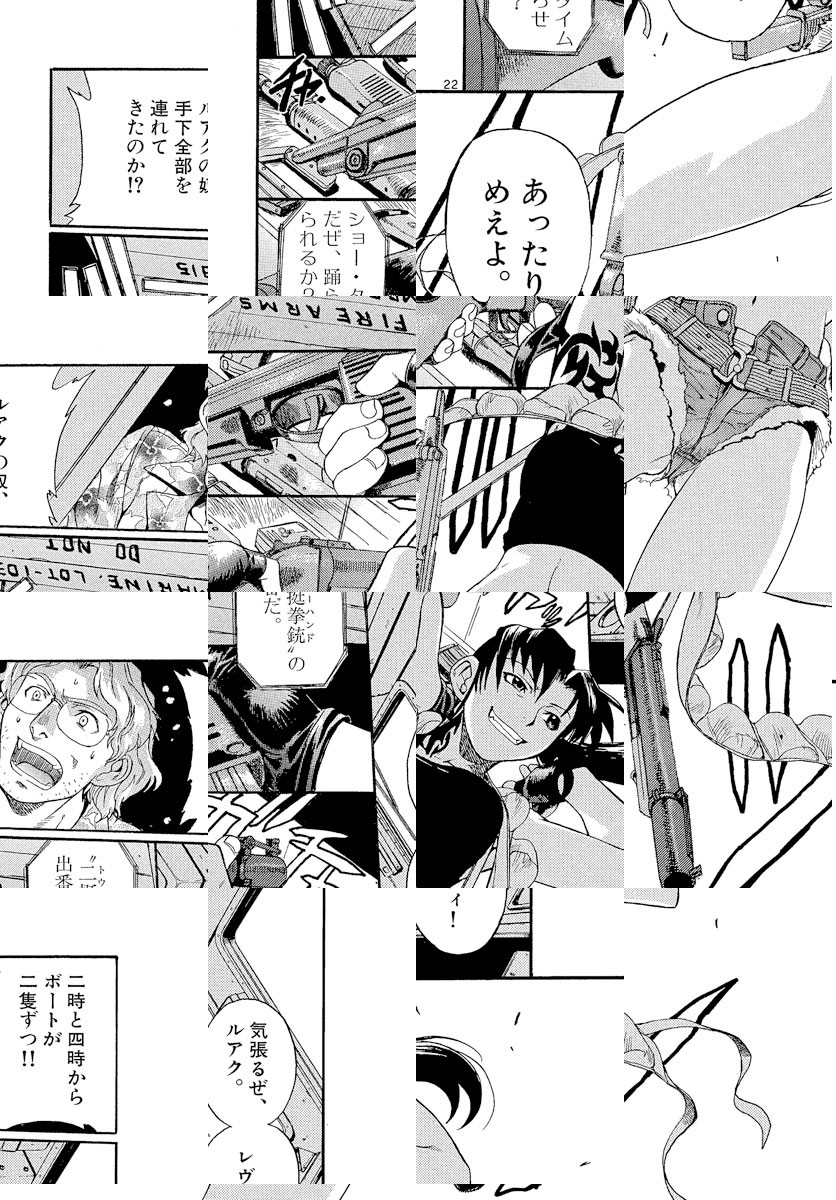 岡島緑郎は旭日重工の会社員。重要なディスクを、ボルネオ支社まで船で運ぶ役目を担っている。だがその途中、「ブラック・ラグーン」と名乗る4人組に襲われ、緑郎は人質に取られてしまった。ブラック・ラグーンは、クライアントからの注文を忠実にこなす裏社会の運び屋だ。旭日重工は、東南アジアへの非合法ルートを使って密貿易をしていて、クライアントは、自分たちもそれに一枚噛ませろと要求しているのだった。旭日重工は機密を守るため、ディスクも緑郎も海の藻屑にしてしまおうと、ブラック・ラグーンの乗る船に攻撃を始める…