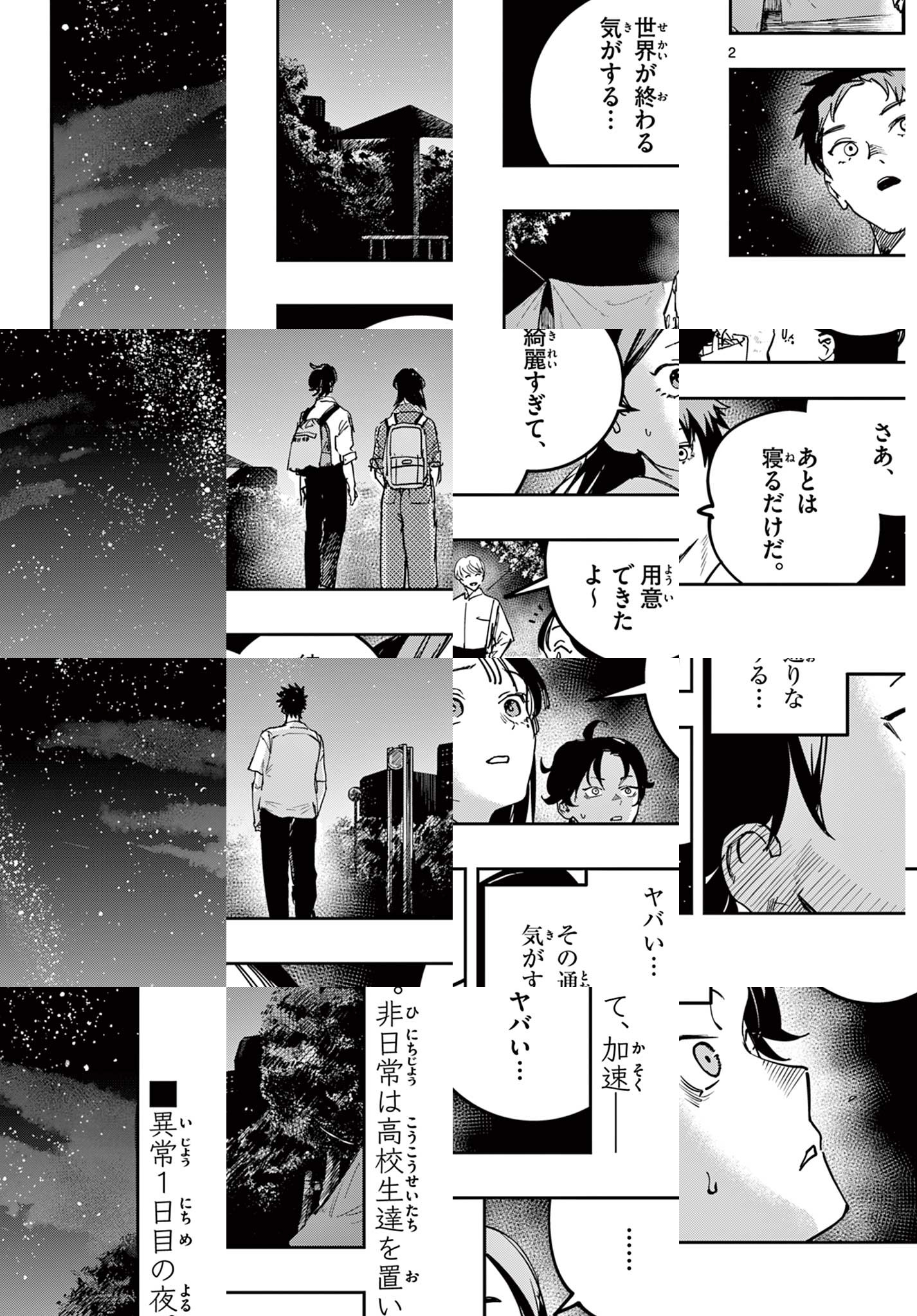 特に仲が良いわけではない 高校の同級生4人 楽しく過ごす かけがえのない時間 と 気づかないような 胸の痛みを伴う時間 「世界は、止まってるみたいだ」 青春は鮮やかで鈍色 高校生たちの日常。そして異常―― 一握りの勇気の意味を問う “非”電撃的青春群像劇(アンチ・エレクトリカル・パレード) 開幕