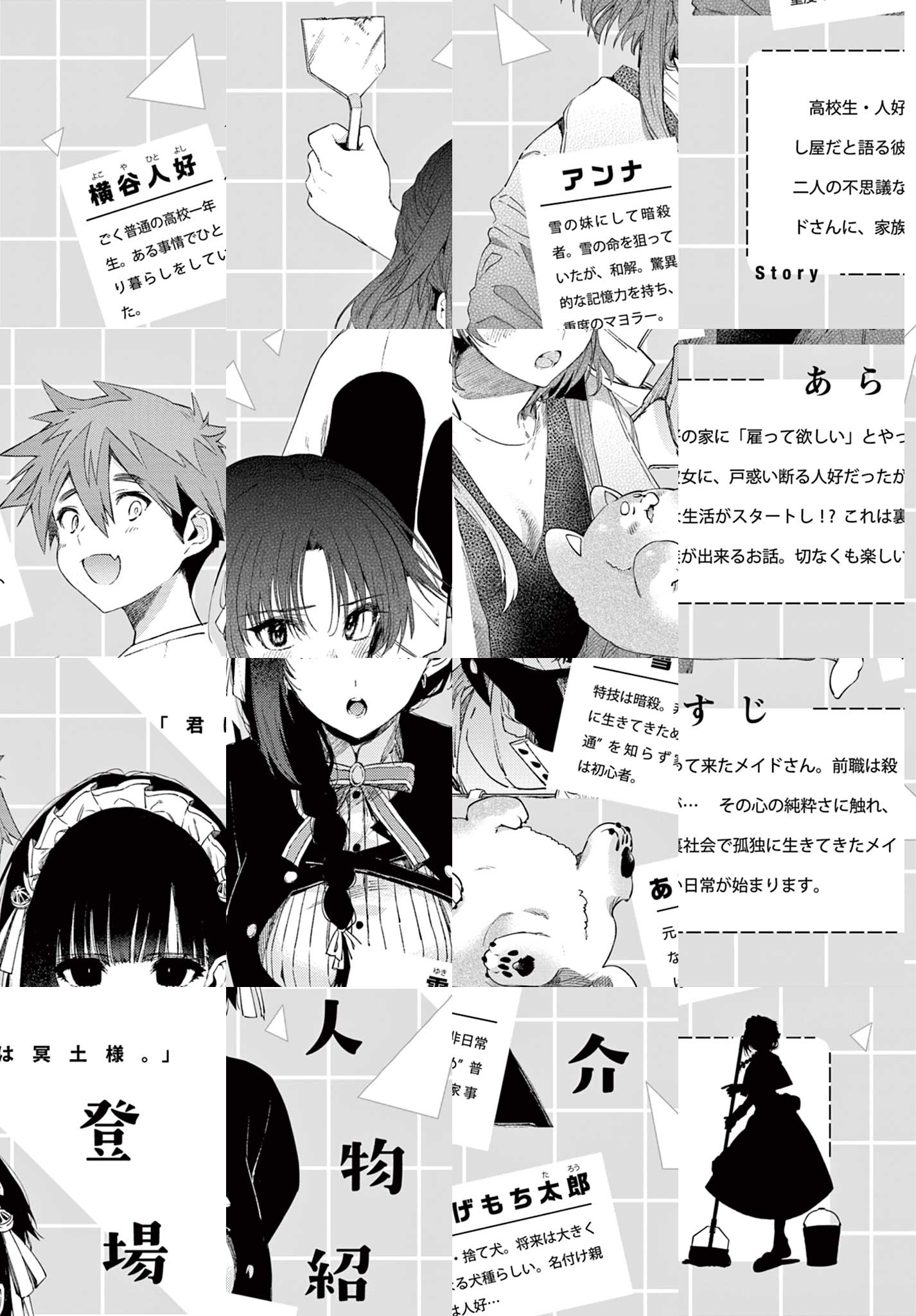 高校生・人好の家に「雇って欲しい」とやって来たメイドさん。前職は殺し屋、特技は暗殺、家事は全くの初心者… 無茶なお願いに戸惑い断る人好だったが、メイドさんに命を救われ、その心の純粋さに触れる。お人好し過ぎる一面も相まって、二人の不思議な生活が始まるのだが…!? これは、感情を知らぬ元殺し屋のメイドさんに、情緒が芽生えるお話。裏社会で孤独に生きてきたメイドさんに、家族が出来るお話。 切なくも楽しい日常が始まります。
