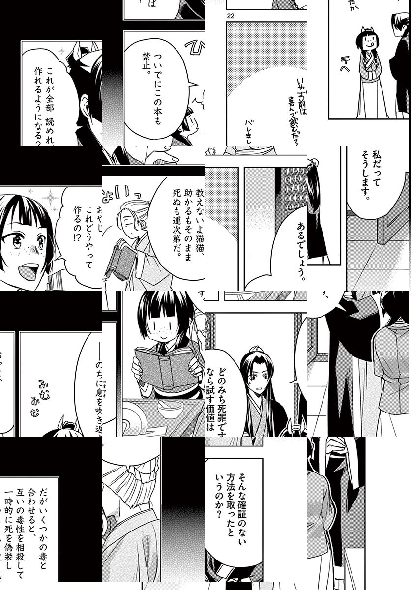 誘拐された挙句、とある大国の後宮に売り飛ばされた薬屋の少女・猫猫(マオマオ)。年季が明けるまで大人しくしようと決めていた猫猫だったが、あるとき皇帝の子どもたちが次々と不審死することを知る。好奇心と少しばかりの正義心、そして薬屋の知識を使い、その謎を調べ始めてから猫猫の運命は大きく変わって…? “なろう”発の大ヒット異色ミステリー、待望のコミカライズ登場です!!