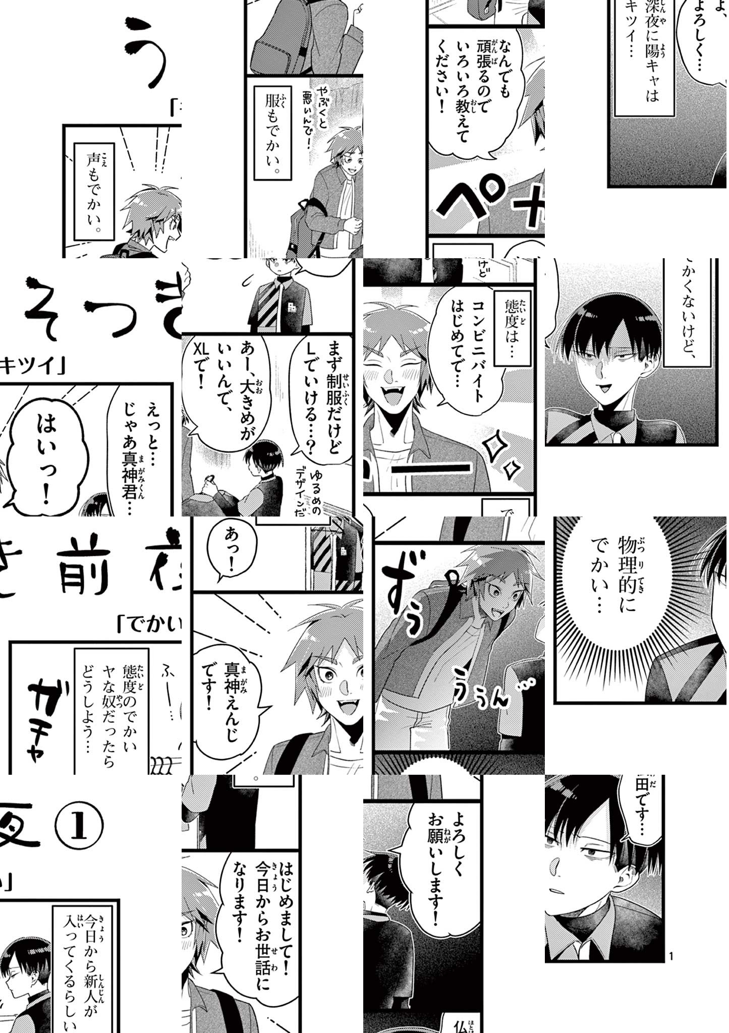 静寂の中、ポツンと光輝く深夜コンビニ。 いつものように、バイト中の仏田と真神の2人。 ゆっくり流れる時間を持て余し、つい ついてしまった仏田の嘘が、まさかの世界への入り口となってしまい…!? 『ピンカポンカ』の永地江六が贈る、 嘘からはじまる 吸血鬼(?)と狼少年の異世界混入コメディー! ゲッサン、サンデーうぇぶりで大好評だった読切作品が本格連載スタート!! ◆作者コメント ちょっと不穏だけどなんか楽しいマンガです!よろしくお願いします!