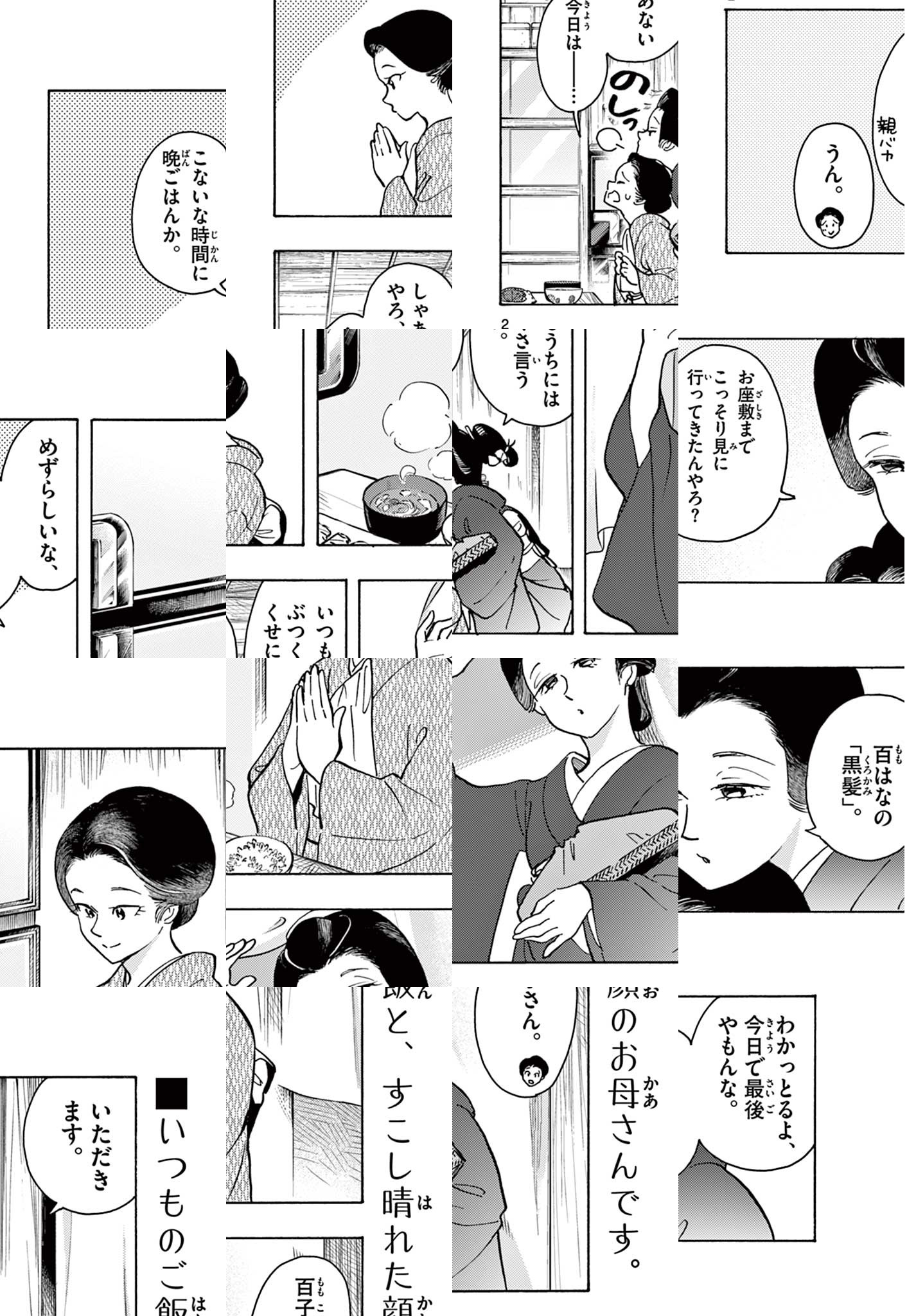 ここは京都のど真ん中にある花街。 舞妓さんたちが深夜、お仕事を終えたあと帰ってきて、共同生活を送っているのは、「屋形」と呼ばれるおうちです。 とある屋形で「まかないさん」として舞妓さんたちに毎日の食事を作っているのは、なんと弱冠16歳の少女・キヨ。 彼女がまかないさんになったのには、ある意外な理由があって——。 華やかな花街の舞台裏、普通の日のごはんを通して、温かな人間模様が描かれます。