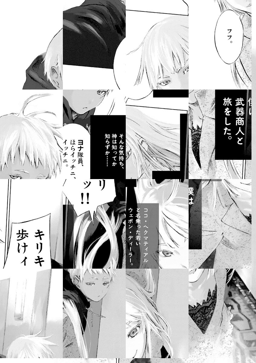 両親を殺した武器を憎みながらも、武器商人ココの私設軍隊に加わることとなった少年ヨナ。ココはある国の軍と武器の取引をしていたが、それを防ごうとする勢力に狙われる。しかし、ココに同行していたヨナが、自らが憎むその武器でそのピンチを乗り切ろうと応戦して…