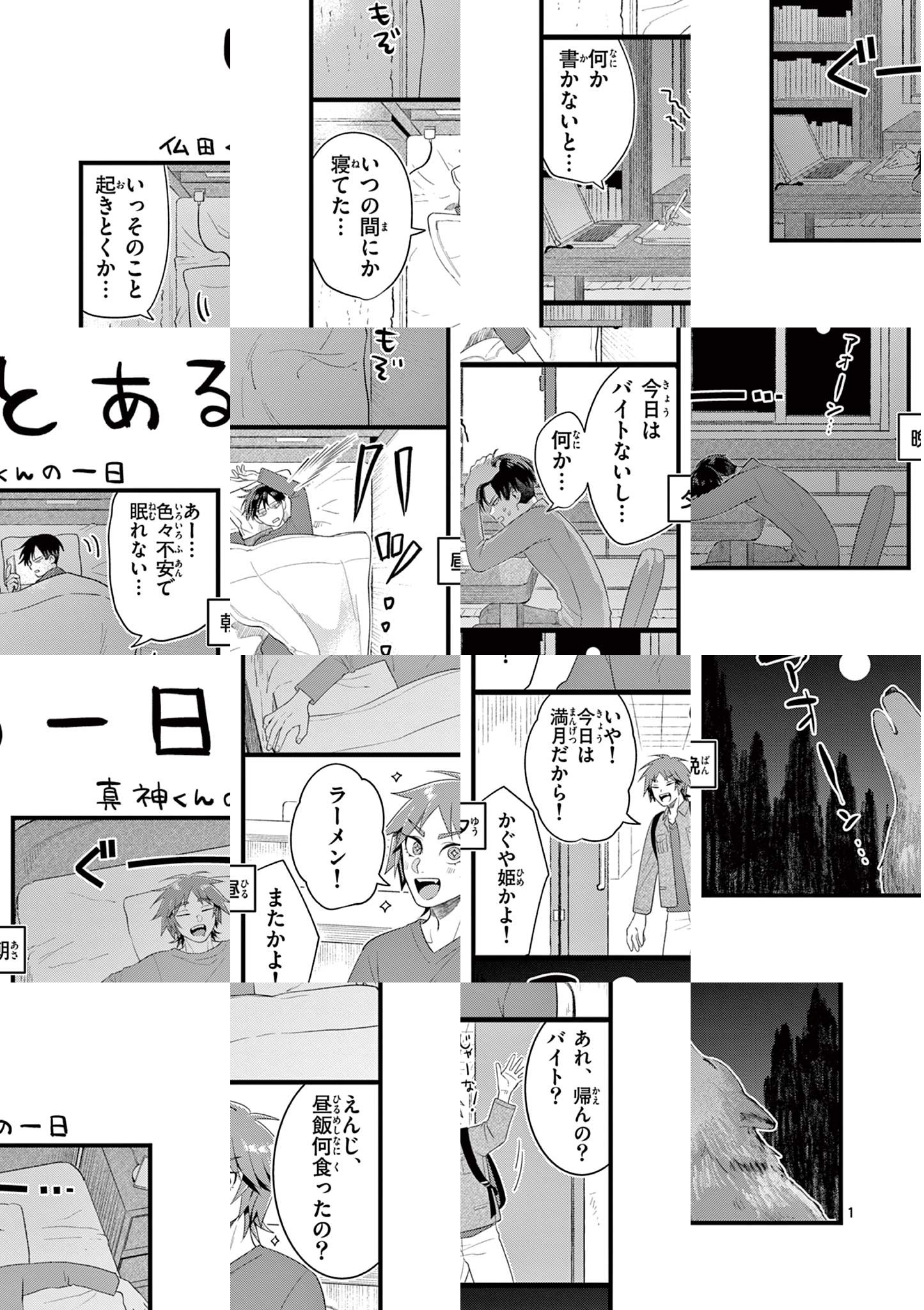 静寂の中、ポツンと光輝く深夜コンビニ。 いつものように、バイト中の仏田と真神の2人。 ゆっくり流れる時間を持て余し、つい ついてしまった仏田の嘘が、まさかの世界への入り口となってしまい…!? 『ピンカポンカ』の永地江六が贈る、 嘘からはじまる 吸血鬼(?)と狼少年の異世界混入コメディー! ゲッサン、サンデーうぇぶりで大好評だった読切作品が本格連載スタート!! ◆作者コメント ちょっと不穏だけどなんか楽しいマンガです!よろしくお願いします!
