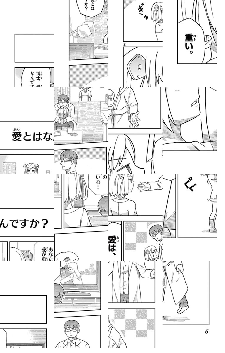 リビングにて。掃除をしているロボット少女 「博士、邪魔です。どいてください」。座っている博士、お菓子を食べていて、どく気がない。ロボット少女「お前もゴミにしてやろうか」。少し?Mっ気なぼっち博士と一緒に暮らすのは、強めなSっ気を持つロボット少女。博士の気持ちを時折エグる、ちょっぴり辛口な関係性。好奇心が旺盛で、博士にはすぐ質問も。「愛とはなんですか?」。…でも淡々と、二人の幸福な日常が描かれたユートピア・コメディー!!こんな「ぼっち」になりたかった!?全人類が憧れる!?ある意味、究極の孤独ライフが描かれています。可愛いロボット少女、毒舌な言葉、泣きそうになる圧倒的孤独感、そんな色々を浴びたい読者の皆様、是非ご一読を! ◆作者コメント 初めまして、山田鐘人(やまだ かねひと)と申します。一生懸命描きました。よろしくお願い致します。