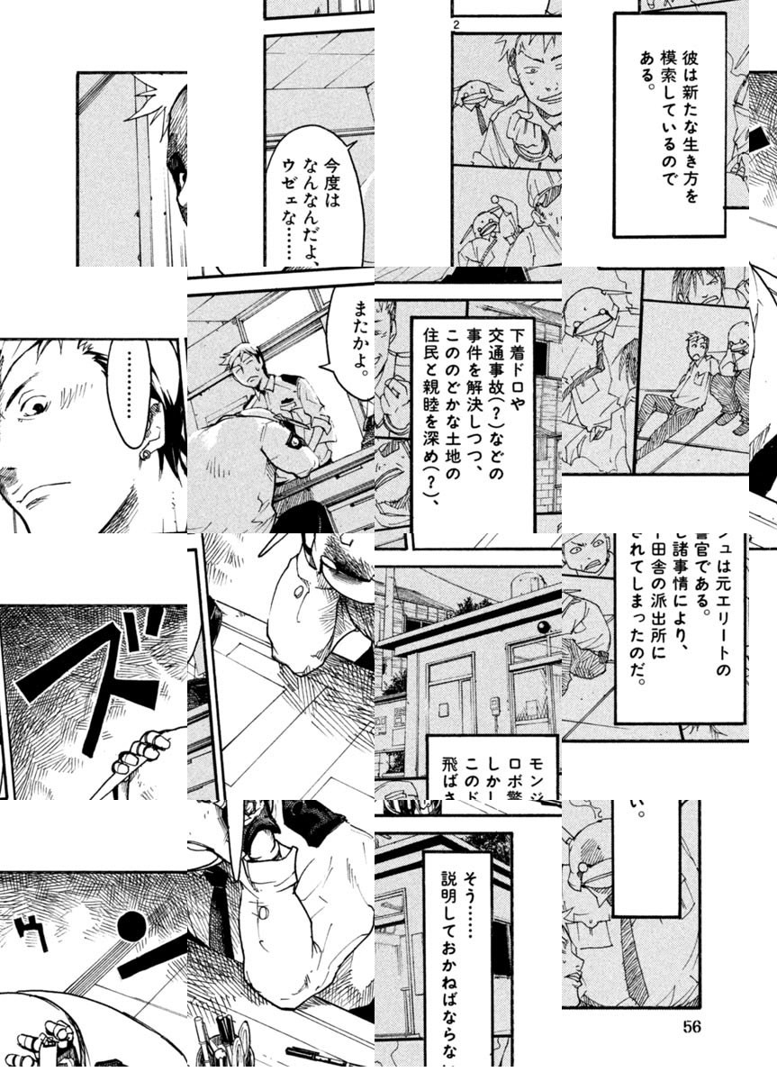 とある田舎の派出所に勤務するロボ警官・モンジュ。近所の子供たちには馬鹿にされ、カップルのいい笑い者になってしまってはいるが、その実体は犯罪対策プロジェクトの切り札として開発された正義の味方。諸事情によって左遷されたとはいえ、まだまだエリート意識の強いモンジュは、こんな田舎の派出所勤務に不満いっぱいな様子でありますが…!?