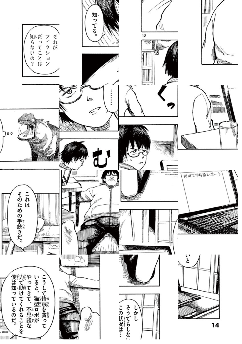 都内某所の一室。部屋にいるのは、そこで一人暮らしをする大学院生の鍵山哲郎………………のみ。誰にも邪魔されない空間で、彼の思考は今日も虚空を彷徨っていく……全ての一人暮らしの人に捧ぐ、哲学系部屋コメディー第1巻!!! ◆作者コメント はじめまして。田岡りきです。僕もサンデーうぇぶりの仲間に入れてもらえると聞いて興奮しております。頑張って面白い漫画を描きますのでよろしくお願いします。