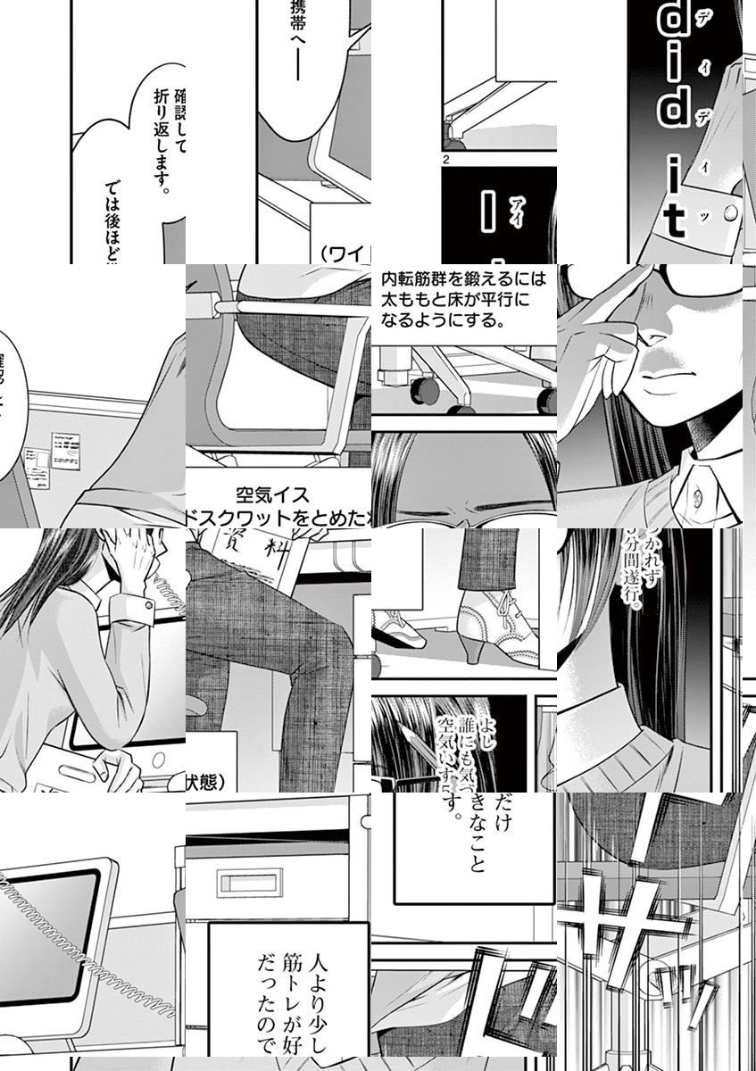 出版社で働く丹練子。周囲には隠しているが、実は彼女は筋トレ大好き女子だった! 仕事が忙しくジムに行くことができない練子は、今日も周囲にばれないように、オフィス内でこっそりと筋トレに興じるのであった――! ◆作者コメント 休憩中のちょっとした時間で、気軽に読んでもらえたら嬉しいです。