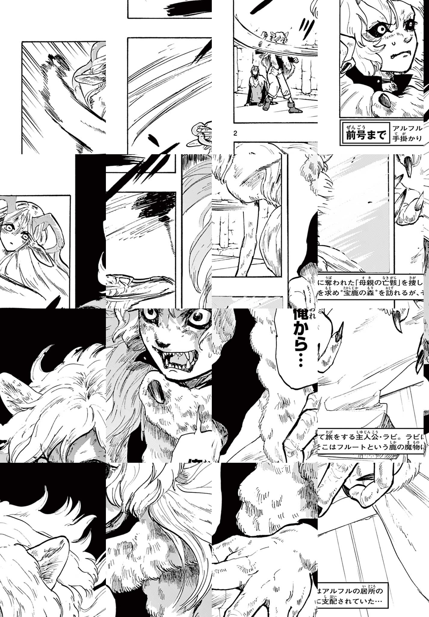 魔物を愛する母と、魔物を憎む父の間に生まれた少年・ラビ。 ある日"狼の魔物"アルフルによって城が襲撃を受け、ラビの母親の亡骸が奪われてしまう。 ラビは世界各地に散らばる「8人の魔物」を捜し出し、アルフルから亡骸を奪い返す為の旅に出る。 20歳の超新鋭が紡ぐ、母をたずねるダークファンタジー巨編!!!