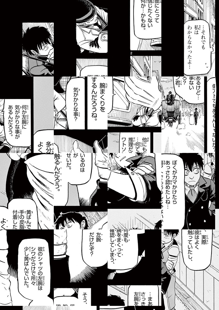 ロンドンを騒がせる「切り裂き」事件。探偵シャーロック・ホームズは真相究明に動き出す。その矢先、彼は不思議な左腕を持つ少年と出会い、霧の都の、その闇の中で蠢く恐るべき真実に気付く。そしてその夜、噂の名探偵は消息を絶った……少年ウォルターと「相棒」ワトソンが挑む名探偵のシークレット・ケース(語られざる事件)!驚天動地の冒険奇譚!!