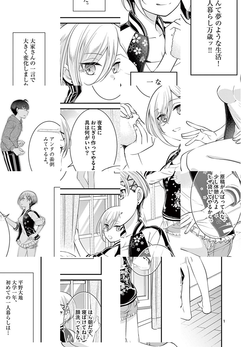 大学生・大地、夢の一人暮らしスタート!しかし、引っ越し先の花ノ咲ハイツで待っていたのは、ヤンキーっぽい大家さん!? 目つきと態度は怖いけど、なんだかんだ面倒見のいい大家さんによって、大地が夢見たオタクの一人暮らしは思わぬ方向へ――!? ◆作者コメント 花ノ咲ハイツで巻き起こる日常をどうぞお楽しみ下さい!