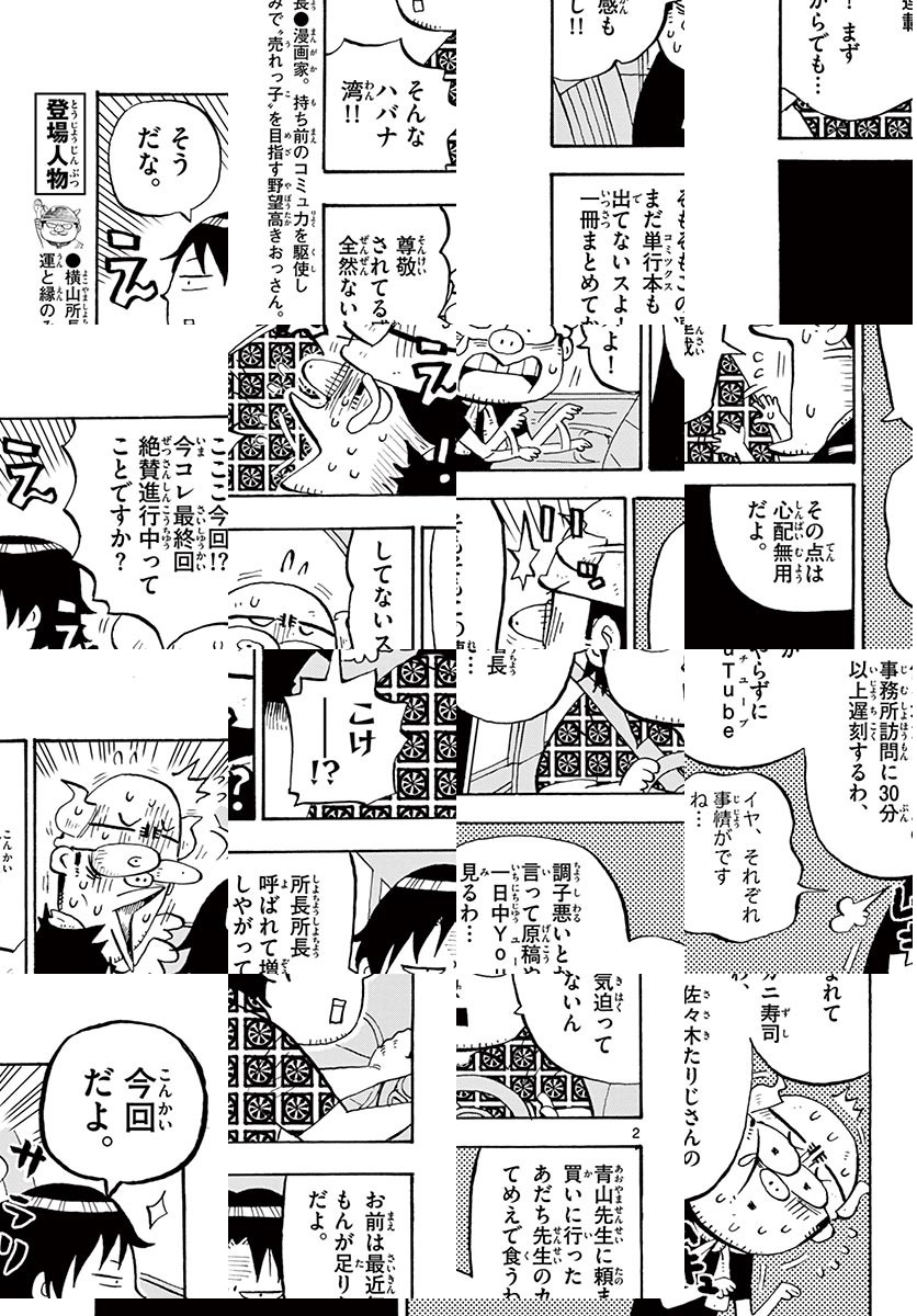 「先生は、漫画を描くときどんなご飯を食べるの?」、「どんなお仕事場なの?」などなど、読めばキミも明日からサンデー通になれる、少年サンデーの裏側(ヒミツ)を非科学的にレポート!!漫画家さんに直撃する回はファン必見です!! 【WEB持ち込み受付開始!】 少年サンデーは2020年4月より、 WEB上での漫画作品持ち込みの受付を開始しました! 投稿方法は超簡単!! まずはこのURLにアクセス!! ↓ https://www.sunday-webry.com/event/www_webbosyu/ ※この漫画は、2016年4月~2017年10月まで週刊少年サンデーに連載していた巻末漫画です。掲載されている情報は、雑誌発売当時の内容ですので予めご了承くださいませ。懸賞やアニメの放送などは終了しておりますので、ご注意ください。 ◆作者コメント 漫画家には変人が多いので、漫画好きだけじゃなくて変人好きにもおすすめです!いろんな話聞かせてもらったなぁ。