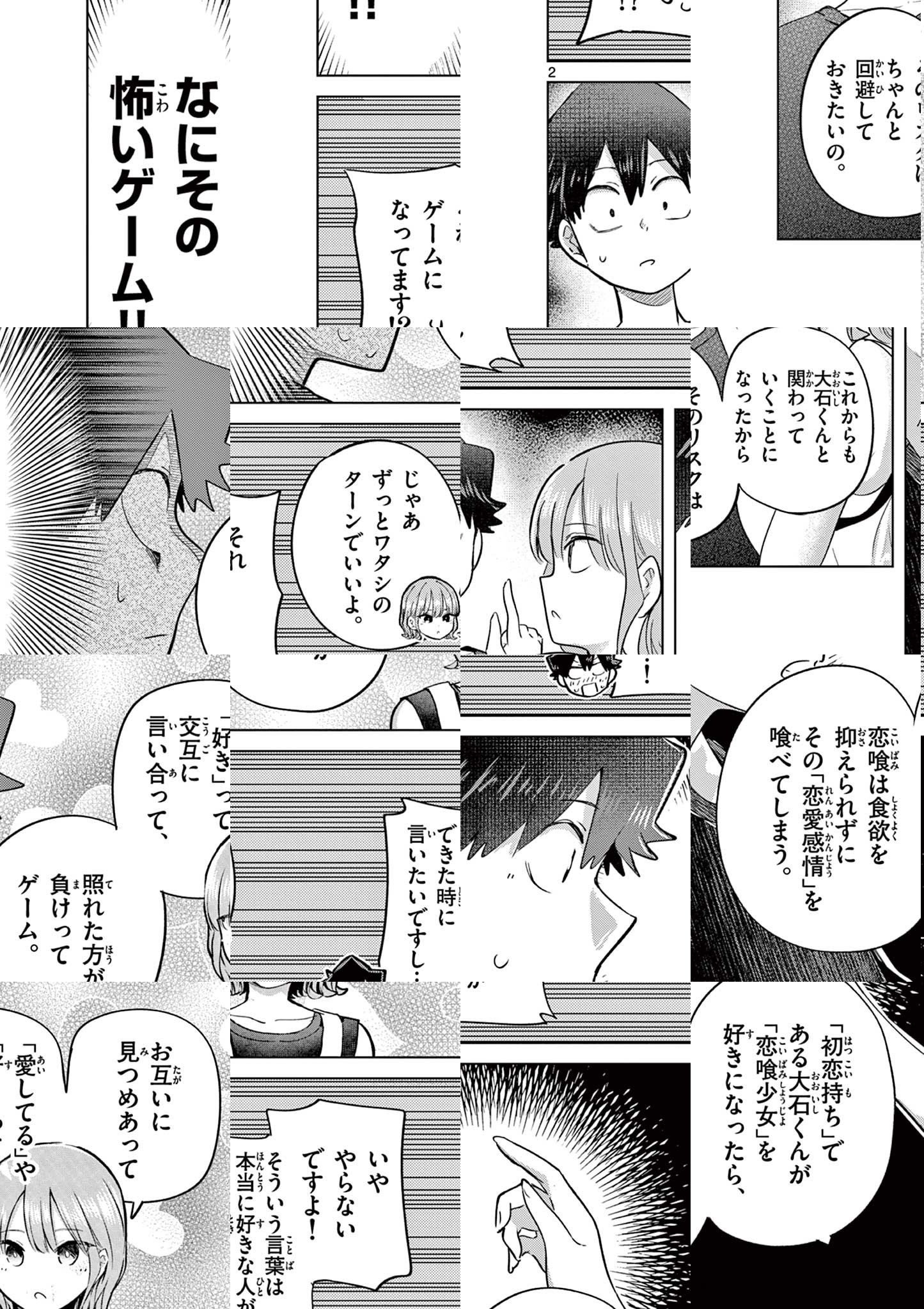 女性を恐れる男子高校生・大石饗。 彼に突然告白してきた、5人の少女。 そのうち4人は、人間の恋愛感情を喰らう生物「恋喰(こいばみ)」。 彼女たちに恋愛感情を食べられると、二度と恋をすることができなくなってしまう。 ただ、本当の告白をした1人の気持ちを、見捨てるわけにはいかない―― 饗は覚悟を決め、5人の中から、本命の1人を見つけだすことを決意する! 脳を揺さぶる、ラブコメ・サスペンス 開幕。