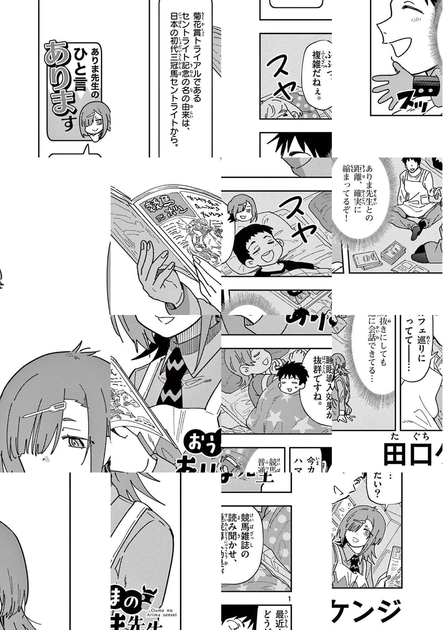 同じ職場の先輩保育士・ありま先生。 頼りになるし、尊敬できるところもあって、正直気になっているっていうか好き……なんですけど。 めちゃくちゃ競馬好きなんですよね。 週末はレースがあるし、夜もナイター競馬? とかに行ってるみたいで。 デートの誘いも上手くいかないし、関係も進展しない……いや、そもそも眼中にないかも。 いやほんと、片思いって大変ですね。 競馬大好きありま先生がはるあき先生に心惹かれる日は来るのか!? 恋のライバルはまさかの競走馬!? 姉まんがの旗手・田口ケンジが贈る競馬ラブコメディー!