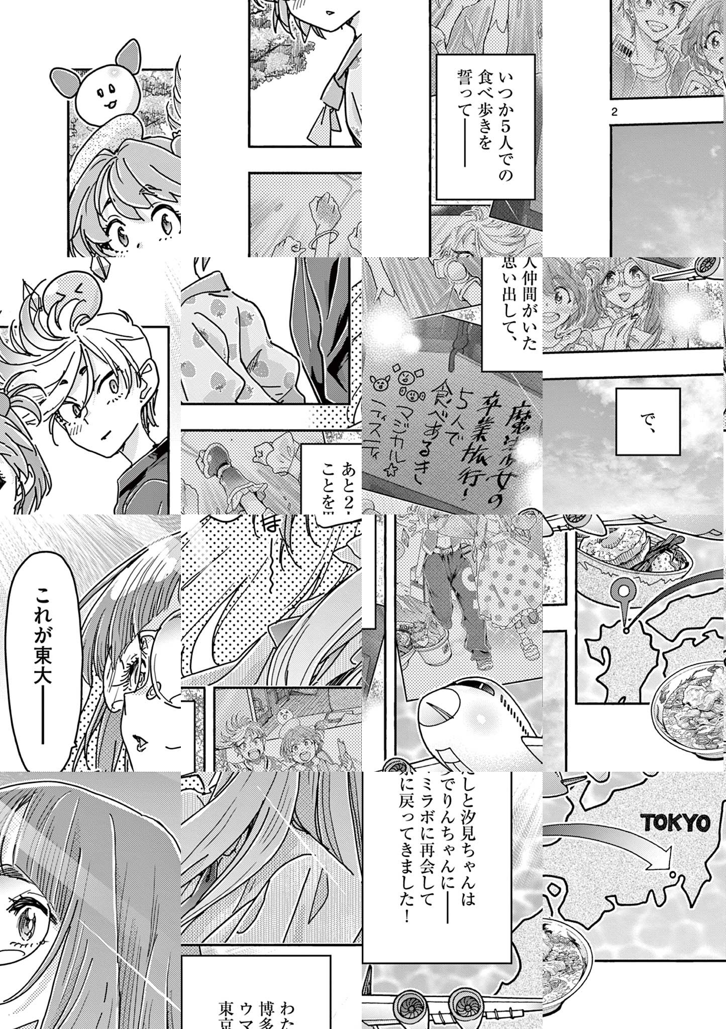 「甘味の天使、アマミテイスティ!おまちどおさま!!」 魔法少女「マジカルテイスティ」として、日本の食文化を守ってきた甘宮いちごたち。 しかし、9年にわたる戦いに勝利した彼女らに待ち受けていたのは、「魔法少女としての記憶を封印される」という無情な結末だった。 3ヶ月後、魔法少女だったことを忘れ、就活に励むいちごは、面接会場で、マジカルテイスティの仲間だった汐見海と再会する。 二人はどこかお互いが気になり、一緒に食事をすることに。 そこで奇跡が起きるのだった―― 「今度こそ、みんなでちゃんと魔法少女を卒業しよう」 元・魔法少女たちの、記憶をたどる全国食べ歩きの卒業旅行が、今始まる!