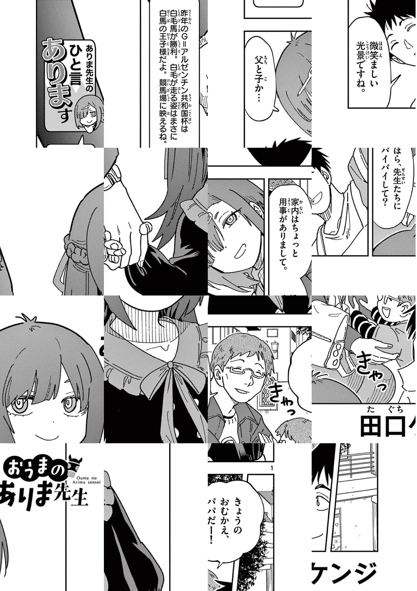 同じ職場の先輩保育士・ありま先生。 頼りになるし、尊敬できるところもあって、正直気になっているっていうか好き……なんですけど。 めちゃくちゃ競馬好きなんですよね。 週末はレースがあるし、夜もナイター競馬? とかに行ってるみたいで。 デートの誘いも上手くいかないし、関係も進展しない……いや、そもそも眼中にないかも。 いやほんと、片思いって大変ですね。 競馬大好きありま先生がはるあき先生に心惹かれる日は来るのか!? 恋のライバルはまさかの競走馬!? 姉まんがの旗手・田口ケンジが贈る競馬ラブコメディー!