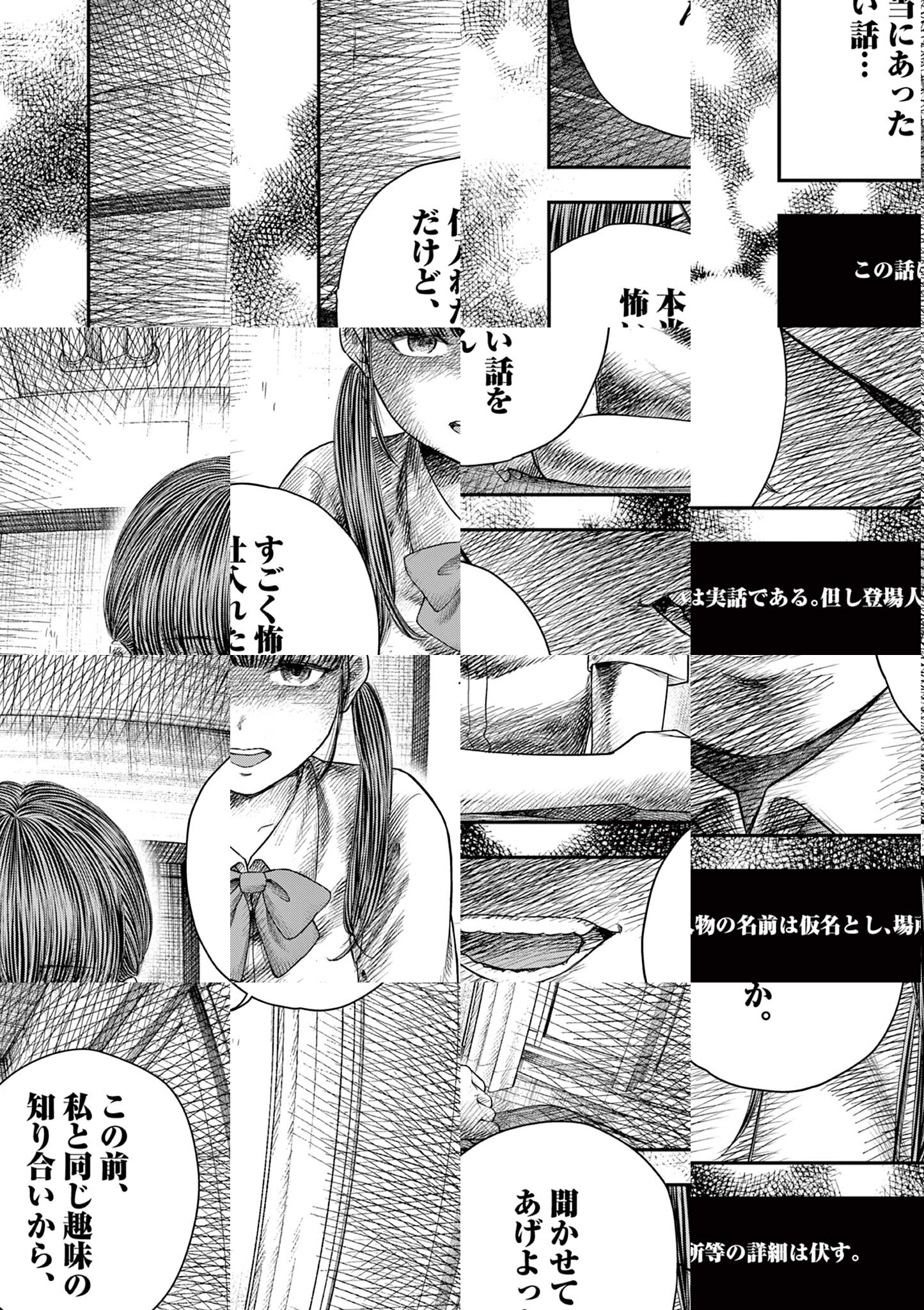 実話怪談師・夜馬裕と鬼才・外本ケンセイが贈る戦慄のホラーオムニバスが開幕―――20年以上にも渡って全国から収集された実話怪談を、人間のリアルと狂気に深く切り込む外本ケンセイが完全漫画化。厭(いや)な怪談の世界にあなたを誘う。 この世のどこかにある一室で、可愛らしい少女が語り始めたのは・・・?