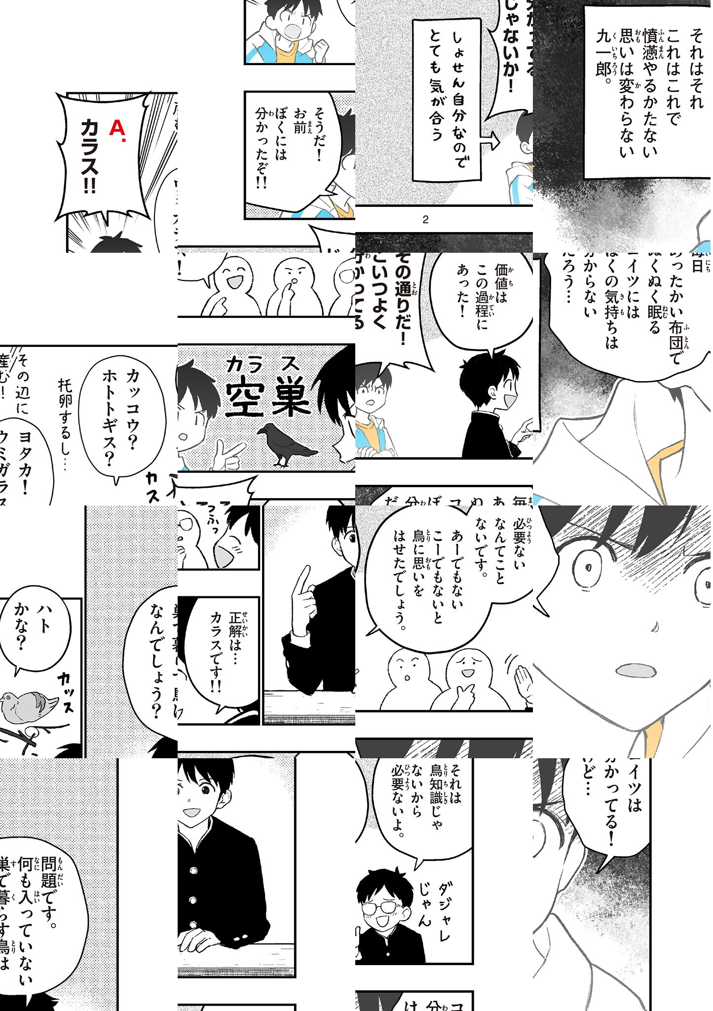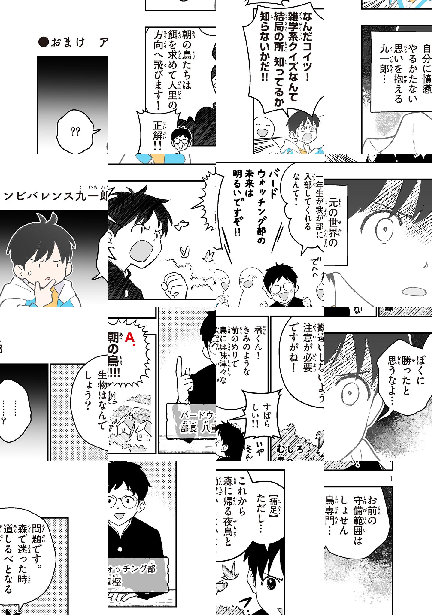 橘九一郎は、クイズが大好き! クイズ研究会のある高校に入って、仲間といっしょの楽しいクイズライフを夢見ていた、そんなある日―― 九一郎はクイズ用のボタンを見つける。 どうやらこれは、クイズが大好きだったおじいちゃんのものらしい。 ボタンを手にした九一郎は、いつの間にか、夢とも現実ともつかない世界へと誘われてしまい…… クイズを解いて、ポイントを貯め、魔法を使う! 不思議な不思議な異世界で、繰り広げられるサバイバルゲーム! はてさて九一郎の運命やいかに? 『湯神くんには友達がいない』の佐倉準がフルカラーで贈る、新感覚・異世界コメディー、開幕! 問題作成:坂本忠之