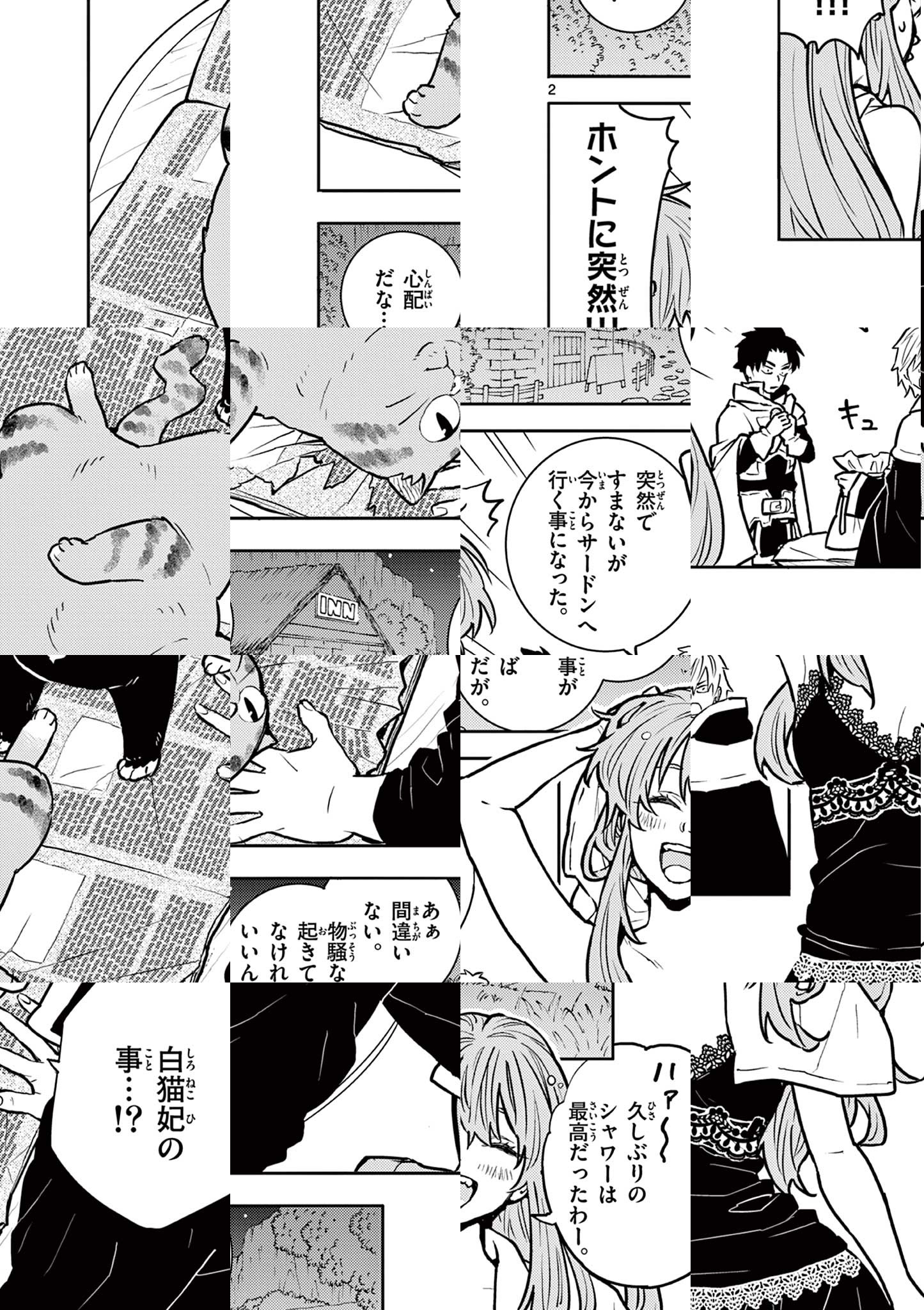世界の平和のために、大魔王討伐を目指し旅立った 勇者レド、武闘家アイナ、魔法使いグレイスの3人。 襲い来る魔物達! アイナの拳がうなり、グレイスの炎が炸裂! さあレド、とどめの一撃を…!! 「無理だ!!」 ……レド? 「だって、オレのひざには…猫がいる」 猫がおジャマで戦えない! 『お坊サンバ!』『育てち魔おう!』の飯島浩介最新作! 強力な作画担当・汐里とのタッグでおくる ほんわか脱力ファンタジー猫マンガ!!