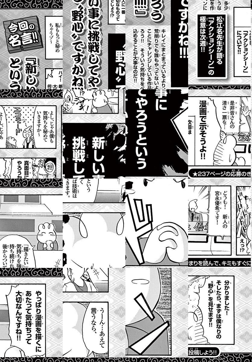 少年サンデーが誇る人気漫画家達が、面白い漫画を描くための奥義を直伝! 「キャラクターはどう作ればいい?」 「魅力的な絵を描くためには?」 「そもそも面白いってなんだろう?」 そんな疑問を一刀両断! これを読めば、漫画づくりが上手く、楽しくできるように!? 【WEB持ち込み受付開始!】 少年サンデーはこの度、 WEB上での漫画作品持ち込みの受付を開始しました! 投稿方法は超簡単!! まずはこのURLにアクセス!! ↓ https://www.sunday-webry.com/event/www_webbosyu/