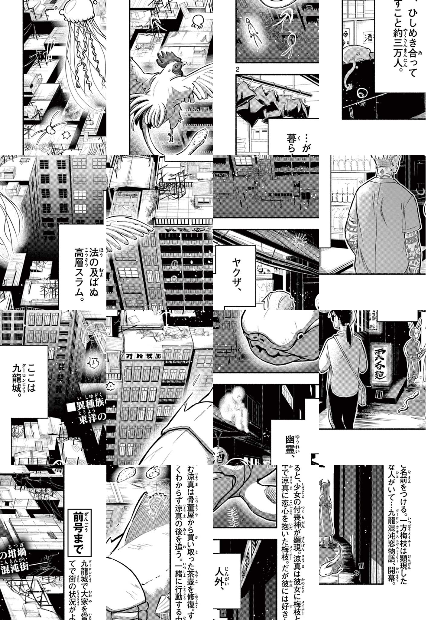 舞台は九龍城。法の及ばぬ高層スラム。様々な種族がひしめきあって暮らすこの街で、大家を営む涼真は壊れた茶器の付喪神・梅枝と出会い・・・