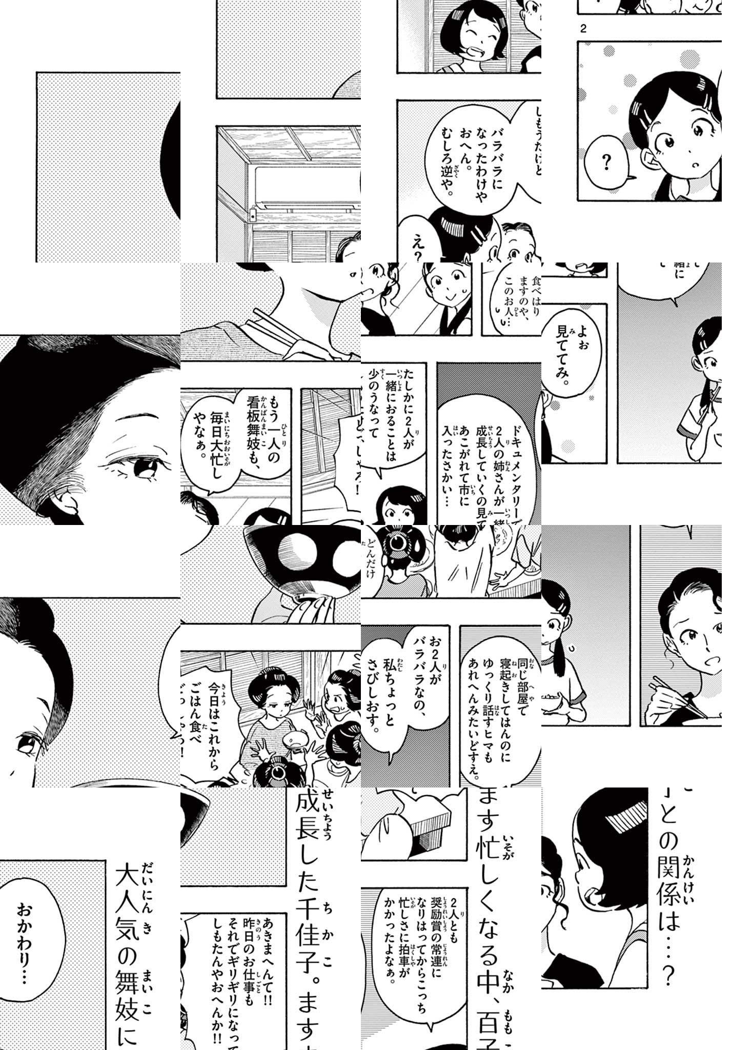ここは京都のど真ん中にある花街。 舞妓さんたちが深夜、お仕事を終えたあと帰ってきて、共同生活を送っているのは、「屋形」と呼ばれるおうちです。 とある屋形で「まかないさん」として舞妓さんたちに毎日の食事を作っているのは、なんと弱冠16歳の少女・キヨ。 彼女がまかないさんになったのには、ある意外な理由があって——。 華やかな花街の舞台裏、普通の日のごはんを通して、温かな人間模様が描かれます。