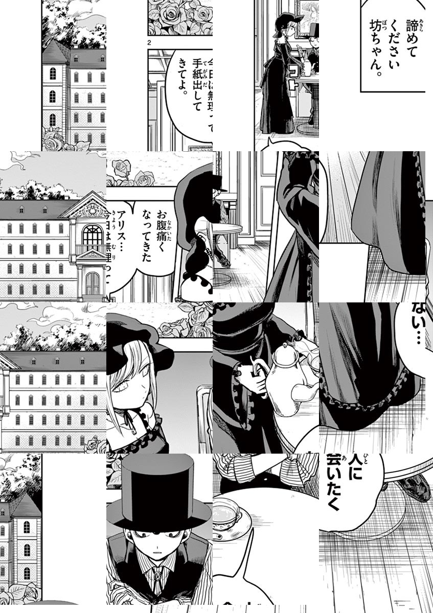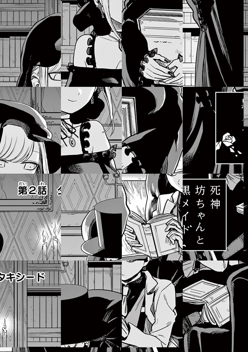 町から外れた森の中、その奥の奥にひっそり佇む大きなお屋敷。そこには「死神」が住んでいる__ある日、魔女に「触れたもの全てを死なせてしまう」呪いをかけられ、周囲に拒絶されるようになった貴族の「坊ちゃん」。そんな坊ちゃんが今一番困っていることは…彼に仕えるメイド・「アリス」の逆セクハラ!彼女のことが気になる坊ちゃん。逆セクハラは嬉しい…でも触れられないのは辛い!アリスもどうやら坊ちゃんが気になっているようだけど、坊ちゃんは彼女の手さえも繋げない。二人の純愛は実を結ぶのか!? Twitterで大反響を呼んだ、二人の小さな恋物語、待望の週刊連載化!! ◆作者コメント ちょいギャグちょいエロちょい純愛で頑張っていこうと思います。 ◆作者コメント(最終話まで読んでいただいた方へ) ご愛読有難うございました。 死神坊ちゃんと黒メイドに関連するお話を思いついたらまたなにか描きますので、見に来て頂けると嬉しいです。