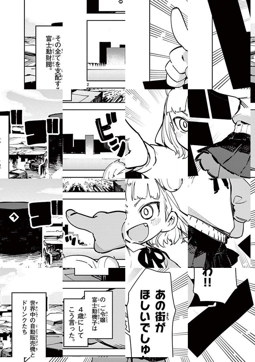 財閥のお嬢様・富士動機子(ふじどうおりこ)は、4才のプレゼントに貰った「街」を立派に成長させていました。 そんな街にある日、巨大な敵が襲来! 大切な街のピンチに慌てるお嬢様ですが、執事セバスチャンが真顔で巨大化ドリンクを手渡し………!?!?!? 街も体も愛情も、でっかいものほど愛おしい! お嬢様でっかくなるだけコメディ!!