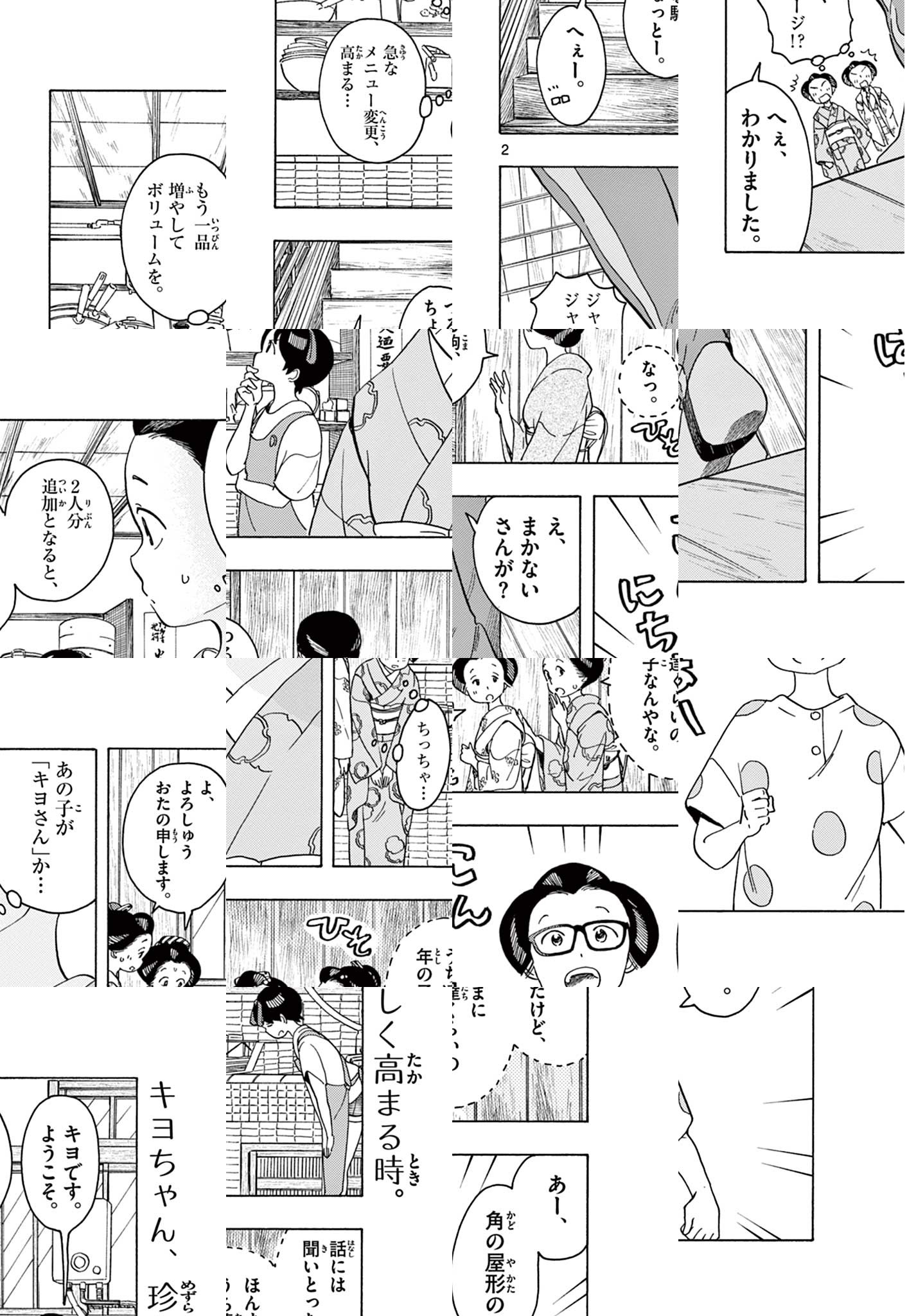 ここは京都のど真ん中にある花街。 舞妓さんたちが深夜、お仕事を終えたあと帰ってきて、共同生活を送っているのは、「屋形」と呼ばれるおうちです。 とある屋形で「まかないさん」として舞妓さんたちに毎日の食事を作っているのは、なんと弱冠16歳の少女・キヨ。 彼女がまかないさんになったのには、ある意外な理由があって——。 華やかな花街の舞台裏、普通の日のごはんを通して、温かな人間模様が描かれます。