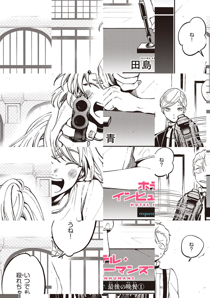 最高のホテルには条件がある。 「極上の食事」、「至高の癒やし」、「魅惑の娯楽」… そして、“最新の武器手配”、“安心の身元詐称”、“完璧な死体処理”――!? そのホテルの…「お客様は殺し屋様」。 もてなすのは決して『NOと告げない』コンシェルジュ。 死の境界線で語られる、インヒューマン(=人非ざるもの)・殺し屋たちの望みとは!? いま鮮烈のキリング・ホテル・ドラマの幕が上がる―――!