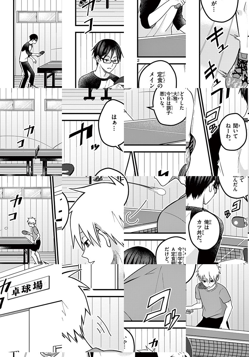 卓球部でダブルスを組む虎谷と竜川。 どこにでもある青い卓球台、それが彼らのステージ。 気になっている女の子が自分のことどう思ってるだとか、 今日の学食のB定食が酢豚だったとか、ドタキャンって何回まで許せるかとか、ショートカットとロングだったらどっちがいいだとか、溺れてる親友と好きな女の子だったらどっち助ける?とかとか・・・ なんでもないけど、なんか懐かしくて笑える 男子高校生による青春ラリー開幕! CV:江口拓也、西山宏太朗、赤崎千夏による 特別PVも公開中!