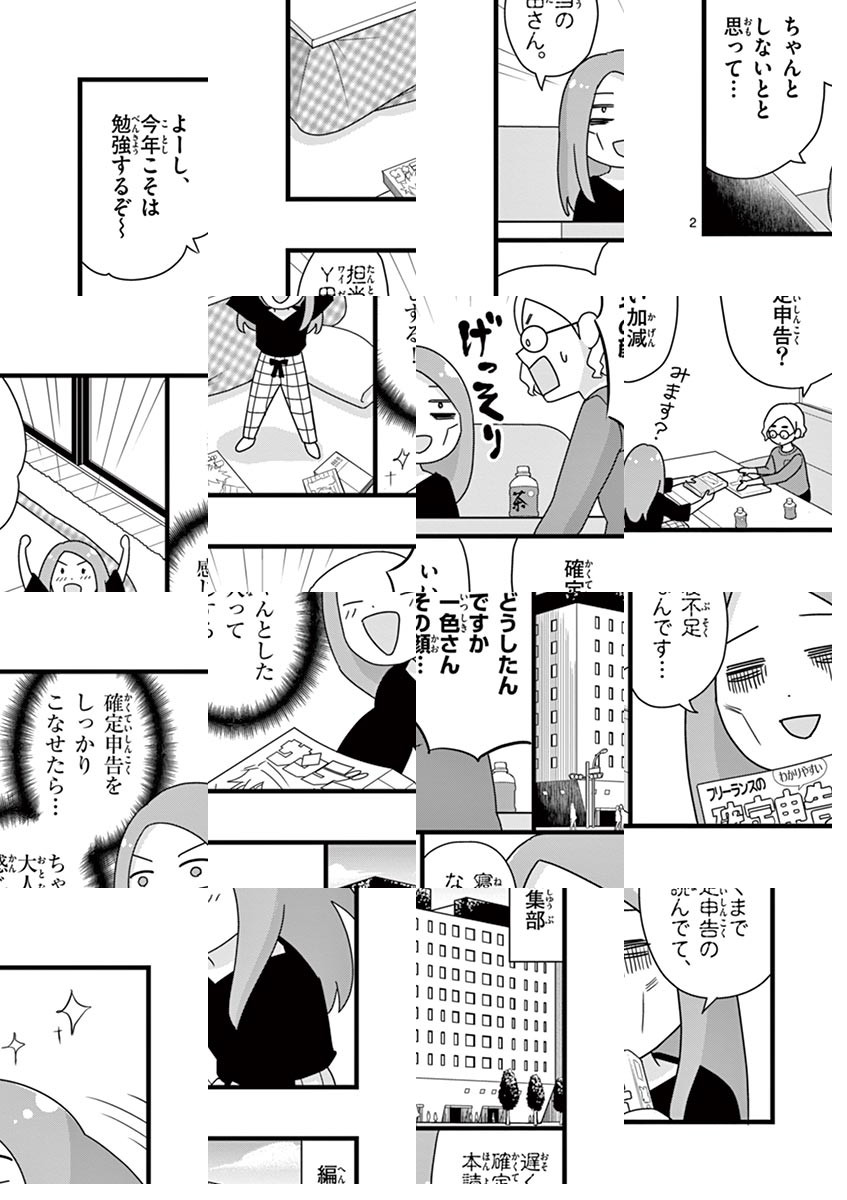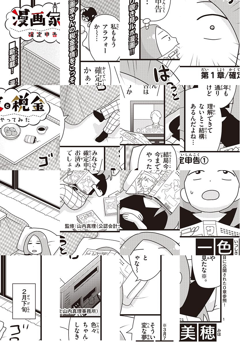 「確定申告しなきゃいけないのに、税金のこととか、難しいことは分からん!」という方、そして、漫画家さんの税金事情をこっそり覗き見てみたい方、必見!! 漫画家・一色美穂がお金にまつわる様々な疑問を解消すべく、税理士さんに「確定申告」という切り口で体当たり取材! 根掘り葉掘り聞きだしちゃいます!! 「ヒット作で突然収入が跳ね上がったらどうなるの?」「グルメ漫画家さんが買ったお肉は経費になるの?」などなど、気になるトピック満載でお届け!!! ◆作者コメント こんにちは、一色美穂です。ややこしくて目が回りそうな税金のことを、わかりやすく描けるよう頑張ります☆ ・本作品に掲載されている情報は、作品が公開された時点での情報であり、今後変更される可能性がありますので、ご留意ください。 ・情報については細心の注意を払っておりますが、正確性および完全性等について一切保証するものではありません。 ・情報の掲載は、あくまで情報提供を目的としたものであり、勧誘や推奨が目的ではありません。 ・情報の利用によって何らかの損害を被った場合であっても、出版社や著者、および監修者は、理由のいかんを問わず一切の責任を負いかねます。情報の利用は必ずご自身の判断で行ってください。