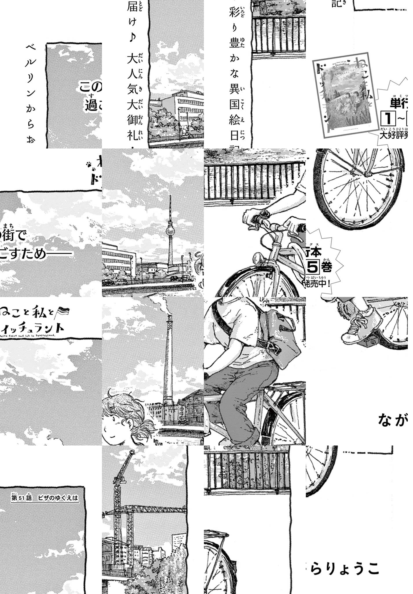 トーコちゃんはライターのお仕事をしている日本人。いまはベルリンで、ねこのむぎくんと二人暮らし。緑の多い石畳の街で、時にはピクニックに行ったり、工夫して日本食を作ったり。現地の食材で極上おやつも。ささやかだけど、いい手ざわりといい匂いのする、いちにちいちにちを、お届けします。見ると心が「ほっ」とあったまる、ごきげんな異国暮らし絵日記をお楽しみください♪ ◆作者コメント 北海道出身、今はドイツ・ベルリン在住で漫画を描いています、ながらりょうこです。この漫画ではドイツに住んでいて見えた景色を、トーコちゃんとむぎくんふたりの生活を通してお届けできればと思っています。楽しんでもらえれば幸いです。