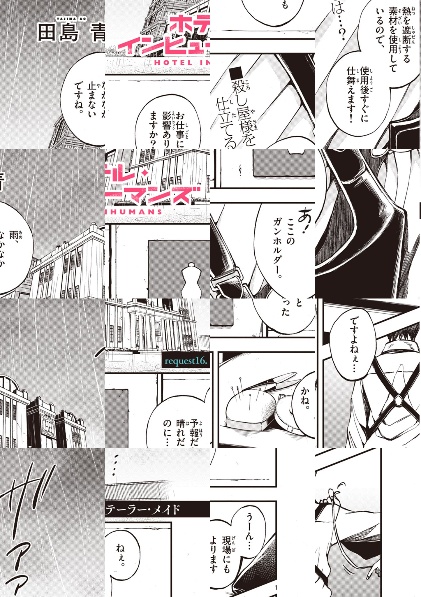最高のホテルには条件がある。 「極上の食事」、「至高の癒やし」、「魅惑の娯楽」… そして、“最新の武器手配”、“安心の身元詐称”、“完璧な死体処理”――!? そのホテルの…「お客様は殺し屋様」。 もてなすのは決して『NOと告げない』コンシェルジュ。 死の境界線で語られる、インヒューマン(=人非ざるもの)・殺し屋たちの望みとは!? いま鮮烈のキリング・ホテル・ドラマの幕が上がる―――!