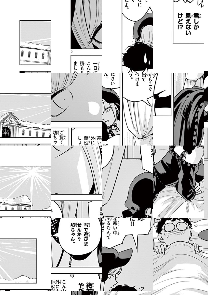 町から外れた森の中、その奥の奥にひっそり佇む大きなお屋敷。そこには「死神」が住んでいる__ある日、魔女に「触れたもの全てを死なせてしまう」呪いをかけられ、周囲に拒絶されるようになった貴族の「坊ちゃん」。そんな坊ちゃんが今一番困っていることは…彼に仕えるメイド・「アリス」の逆セクハラ!彼女のことが気になる坊ちゃん。逆セクハラは嬉しい…でも触れられないのは辛い!アリスもどうやら坊ちゃんが気になっているようだけど、坊ちゃんは彼女の手さえも繋げない。二人の純愛は実を結ぶのか!? Twitterで大反響を呼んだ、二人の小さな恋物語、待望の週刊連載化!! ◆作者コメント ちょいギャグちょいエロちょい純愛で頑張っていこうと思います。 ◆作者コメント(最終話まで読んでいただいた方へ) ご愛読有難うございました。 死神坊ちゃんと黒メイドに関連するお話を思いついたらまたなにか描きますので、見に来て頂けると嬉しいです。