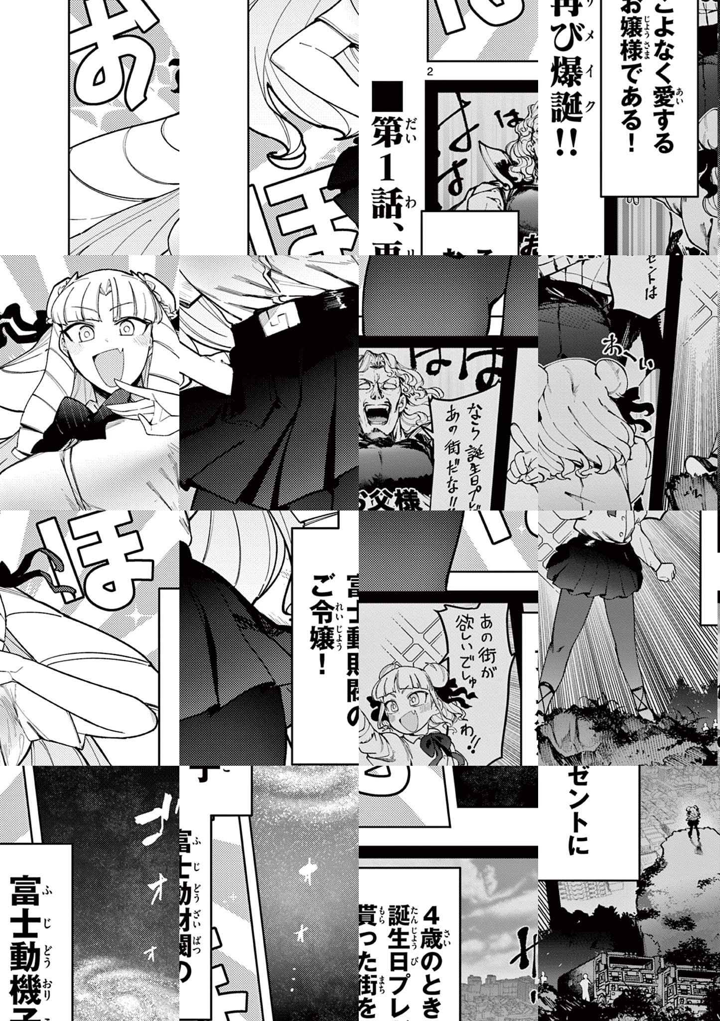 財閥のお嬢様・富士動機子(ふじどうおりこ)は、4才のプレゼントに貰った「街」を立派に成長させていました。 そんな街にある日、巨大な敵が襲来! 大切な街のピンチに慌てるお嬢様ですが、執事セバスチャンが真顔で巨大化ドリンクを手渡し………!?!?!? 街も体も愛情も、でっかいものほど愛おしい! お嬢様でっかくなるだけコメディ!!