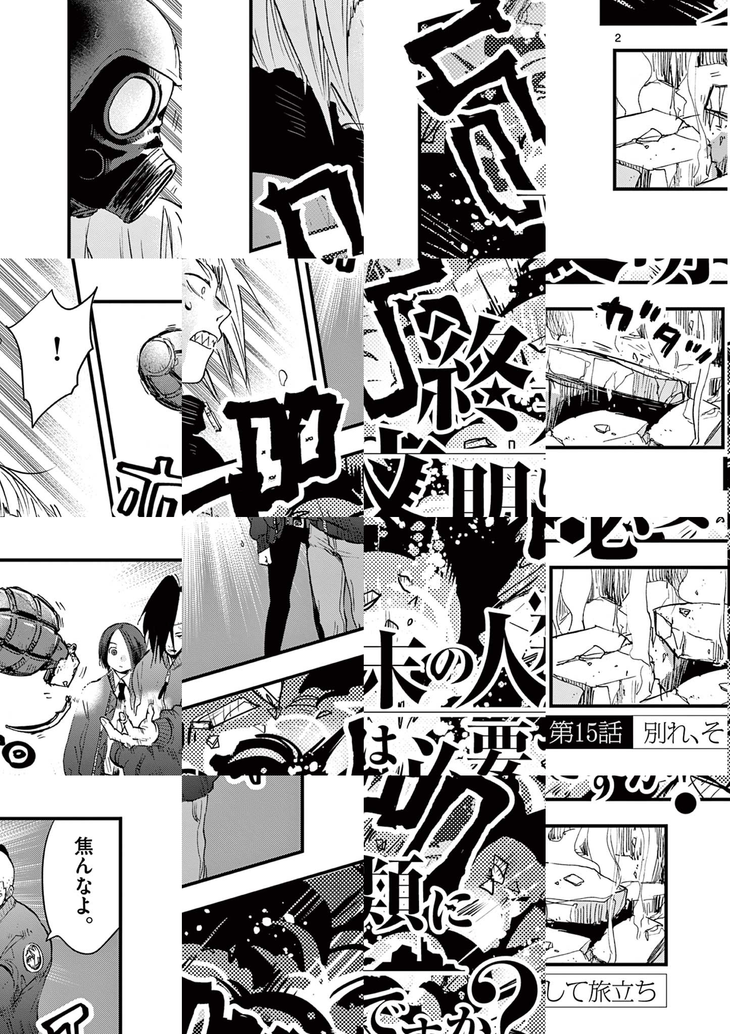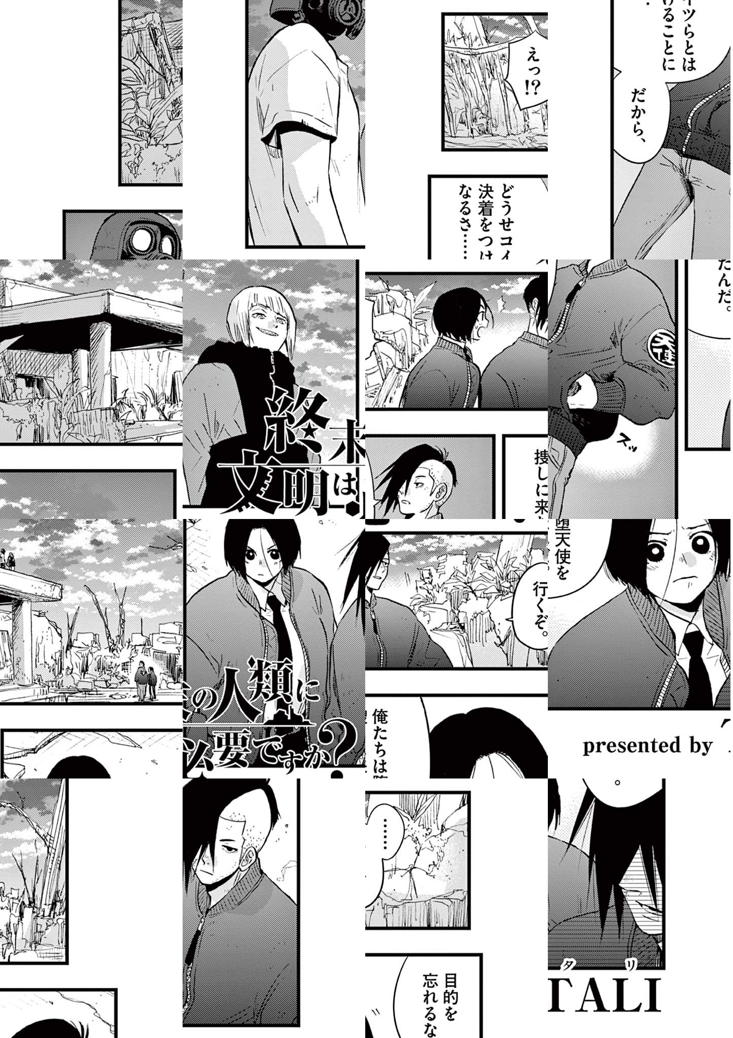西暦××××年。「神」なるものが統(す)べるこの終末世界で、地を這うように生きる人間ども。数少なくなった人類だが、そんな中、カサゴは「神」を盲信し、命じられるままに人間から文明を奪い取っていくという「文明回収」業に手を染めていた。一方、仕事の途中でカサゴが出会ったメバルは、「神」に対する猜疑心を隠そうともしなかった。カサゴは親を捜し、メバルは親の仇を捜しているという対照的なふたりが、「文明」に触れながら、回収の旅を続けることに…近未来の摩訶不思議終末紀行!! ◆作者コメント はじめまして、TALIです。「終末の人類に文明は必要ですか?」はアナログレコードを初めて見た人が「これなんなんですか? え? 音楽聴くものなんですか? へー」となっている感じを漫画にしていくと面白そうだなー、と思ったのがきっかけのひとつです。エモいね。