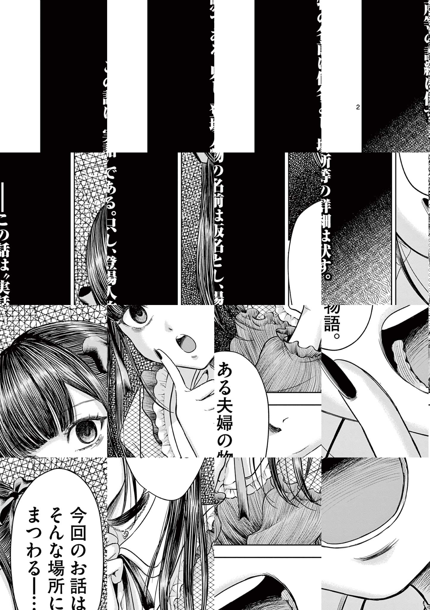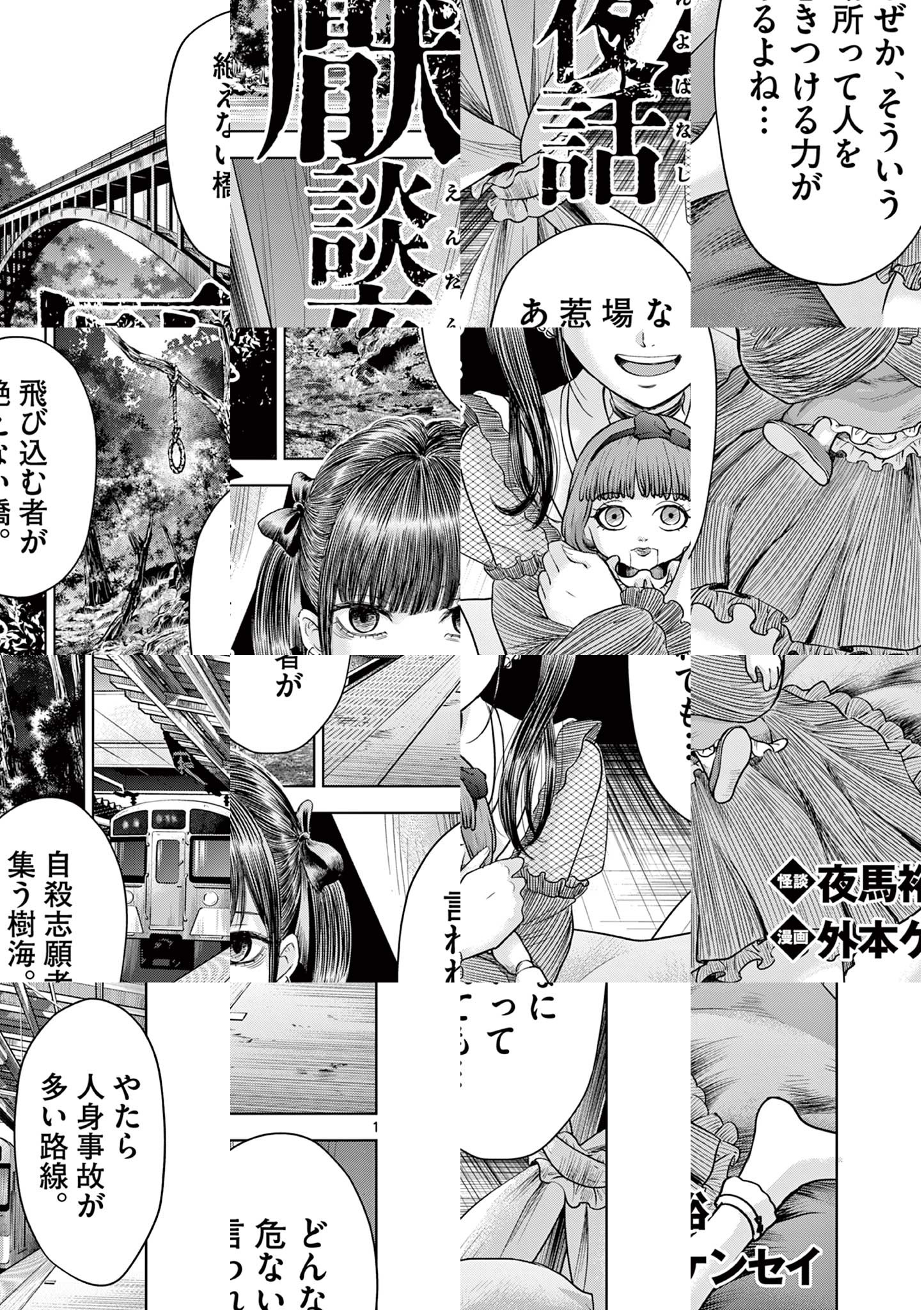 実話怪談師・夜馬裕と鬼才・外本ケンセイが贈る戦慄のホラーオムニバスが開幕―――20年以上にも渡って全国から収集された実話怪談を、人間のリアルと狂気に深く切り込む外本ケンセイが完全漫画化。厭(いや)な怪談の世界にあなたを誘う。 この世のどこかにある一室で、可愛らしい少女が語り始めたのは・・・?